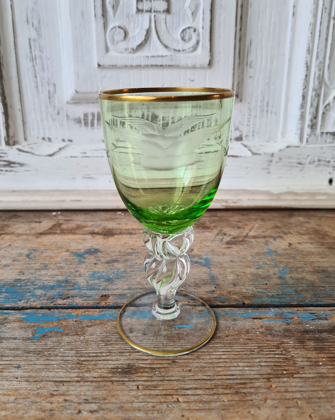Lyngby Måge hvidvinsglas med grøn kumme