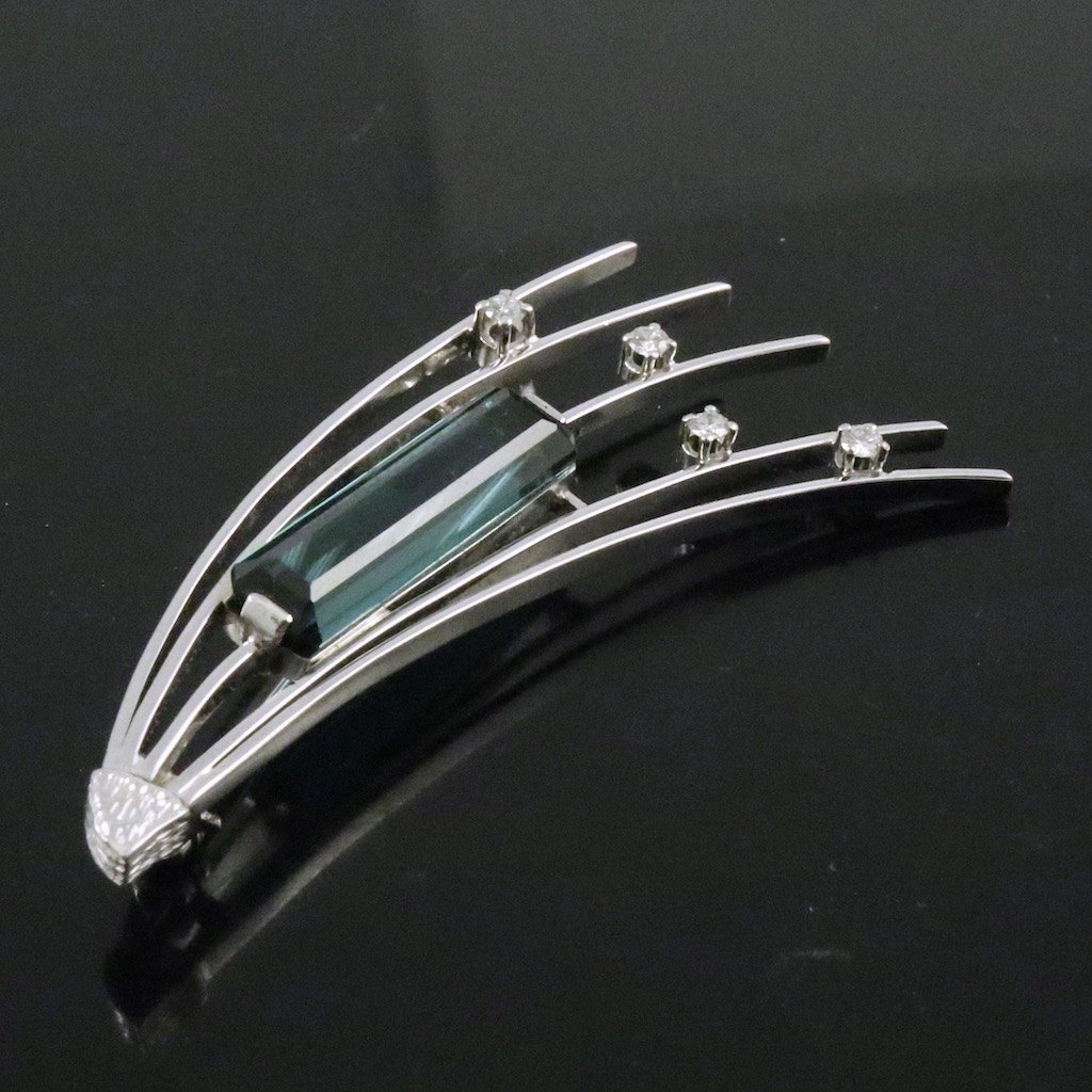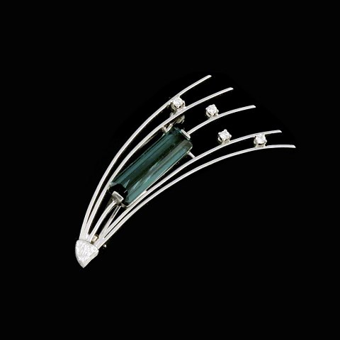 Broche i 14k hvidguld med Tourmalin og diamanter. Total 0.12ct.