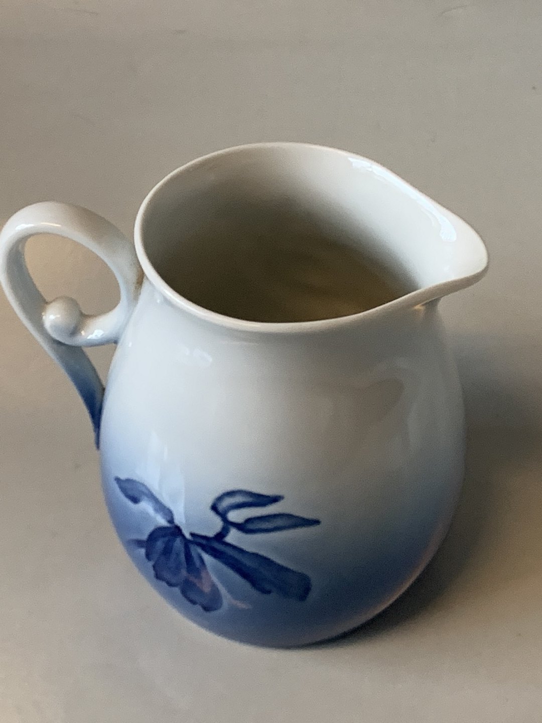 Kande i hvidt og gradueret blå porcelæn med motiv af julerose.