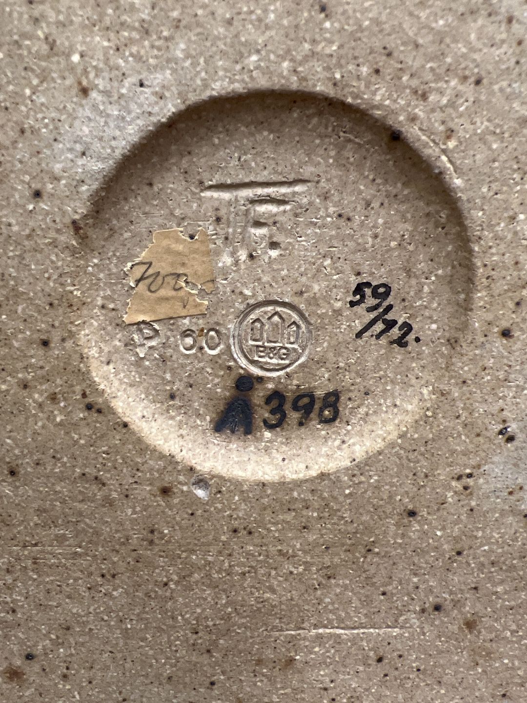 Tut Fog vase i glaseret stentøj udført hos Bing & Grøndahl ca. 1960'erne.
