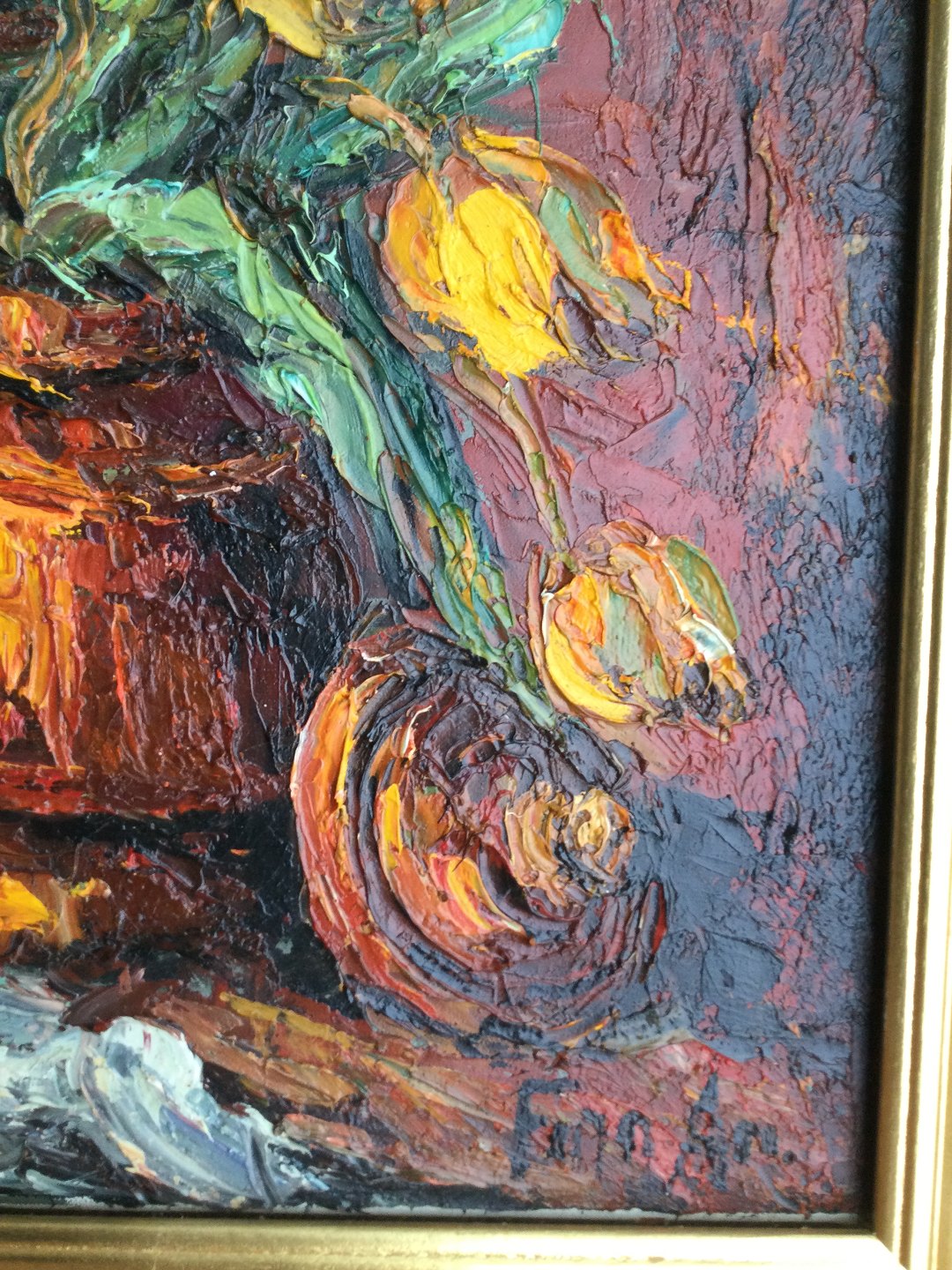 Maleri af Finn Andersen - Tulipaner i kobberkedel.