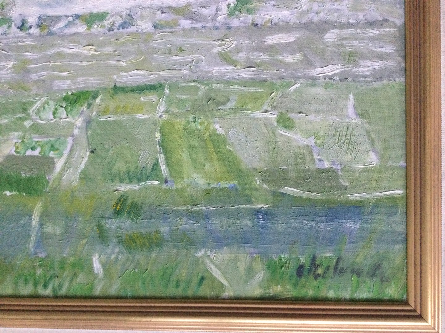Maleri af Poul Ekelund - Grønt landskab Limfjorden, Thy 1966.
