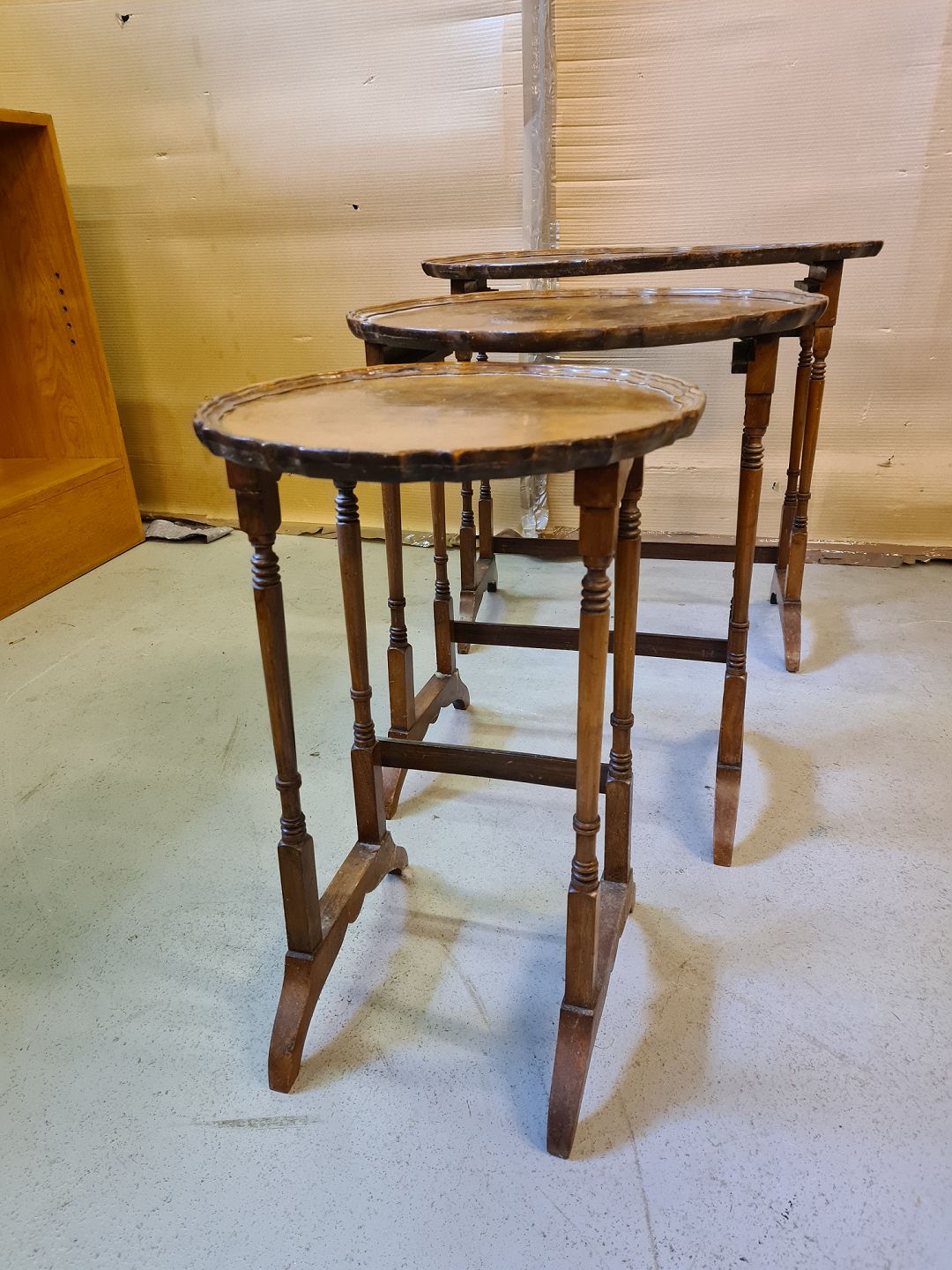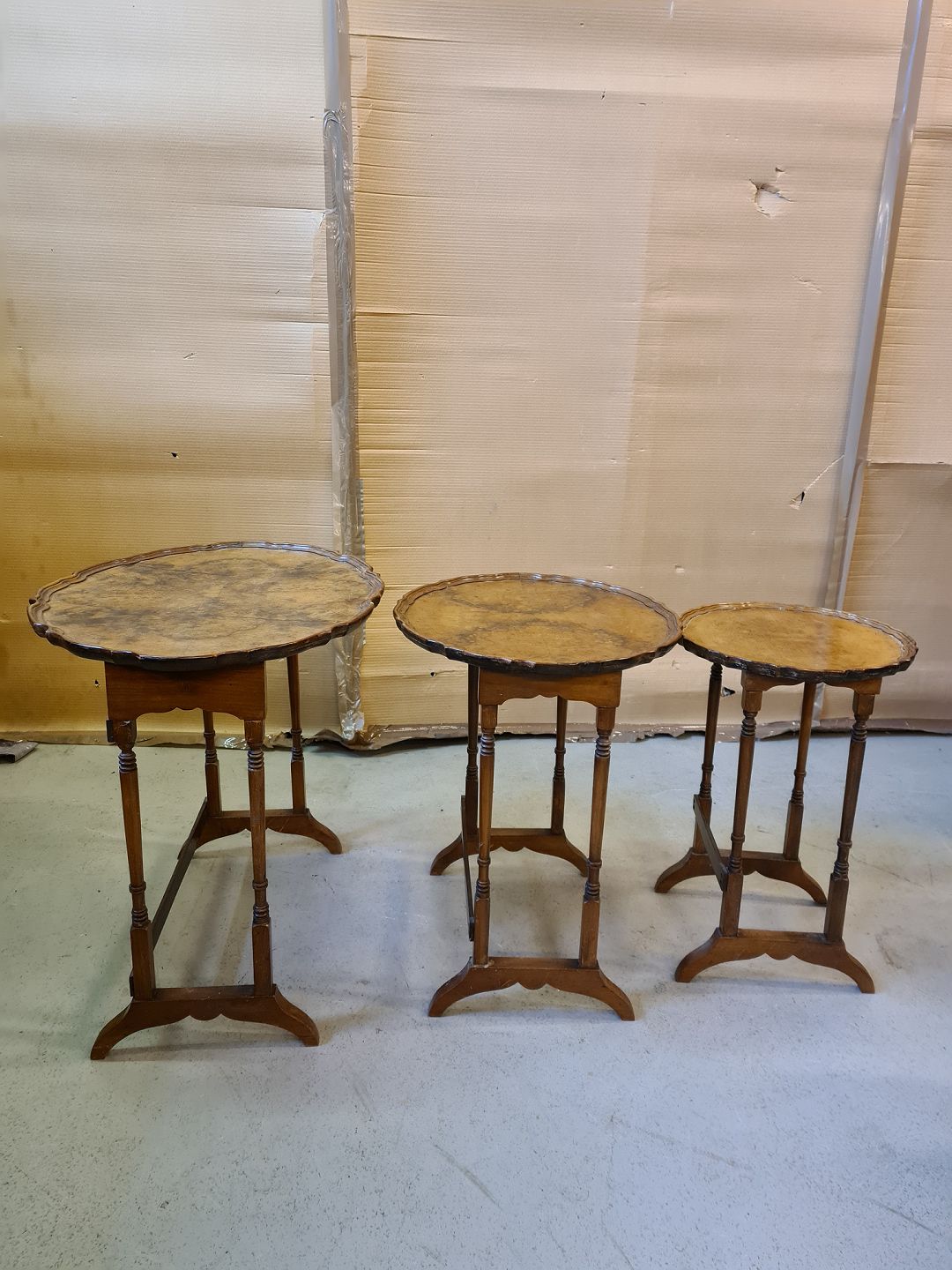 3 Borde i mahogni og bøgetræ, fra 1980erne.