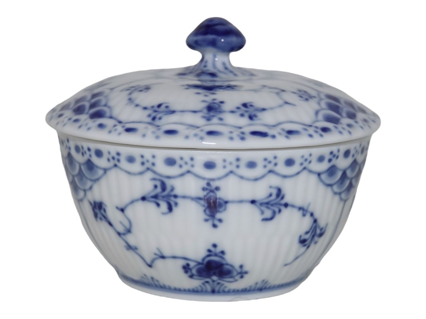 Royal Copenhagen Musselmalet Halvblonde, lille sukkerskål med låg.