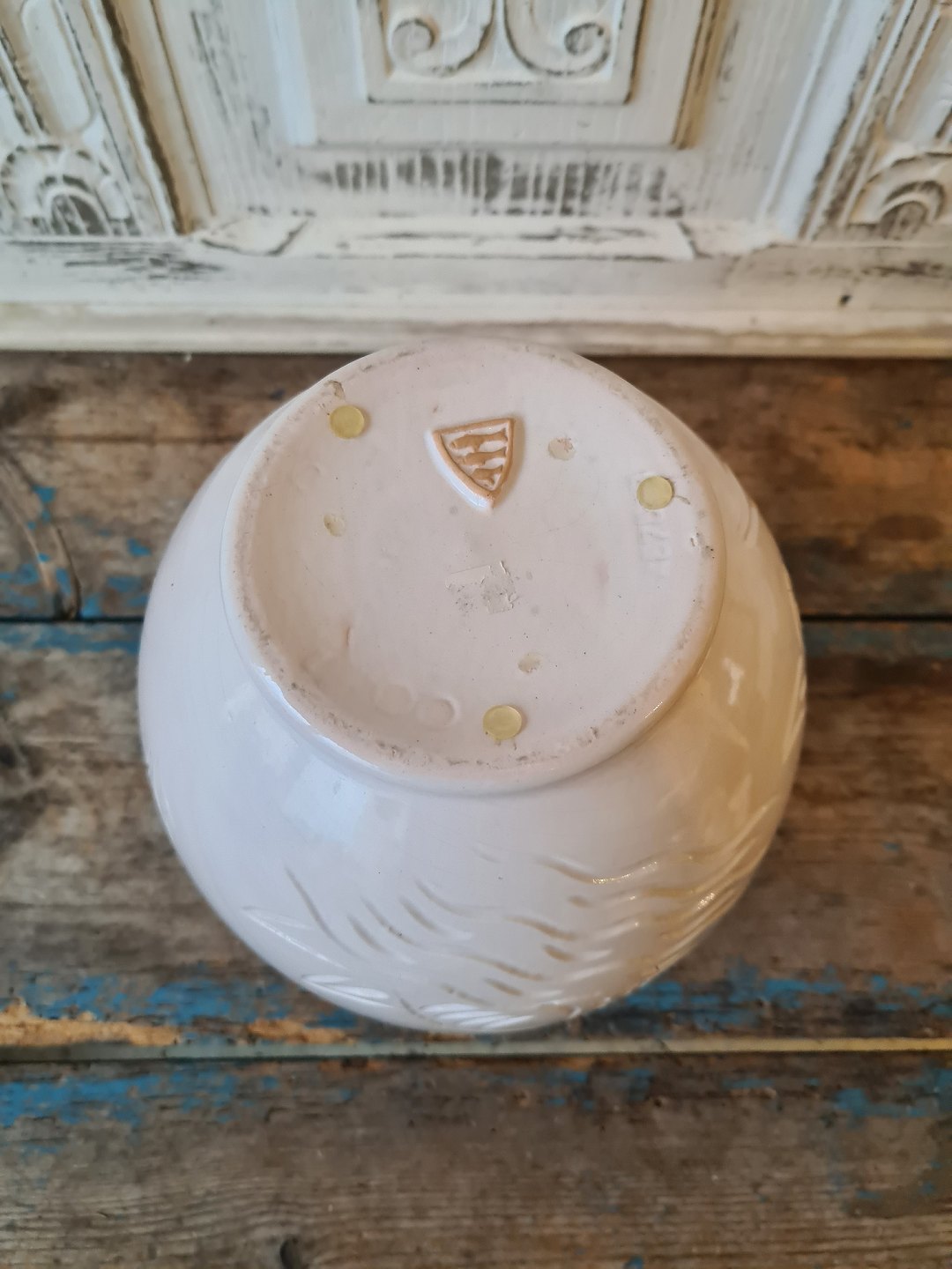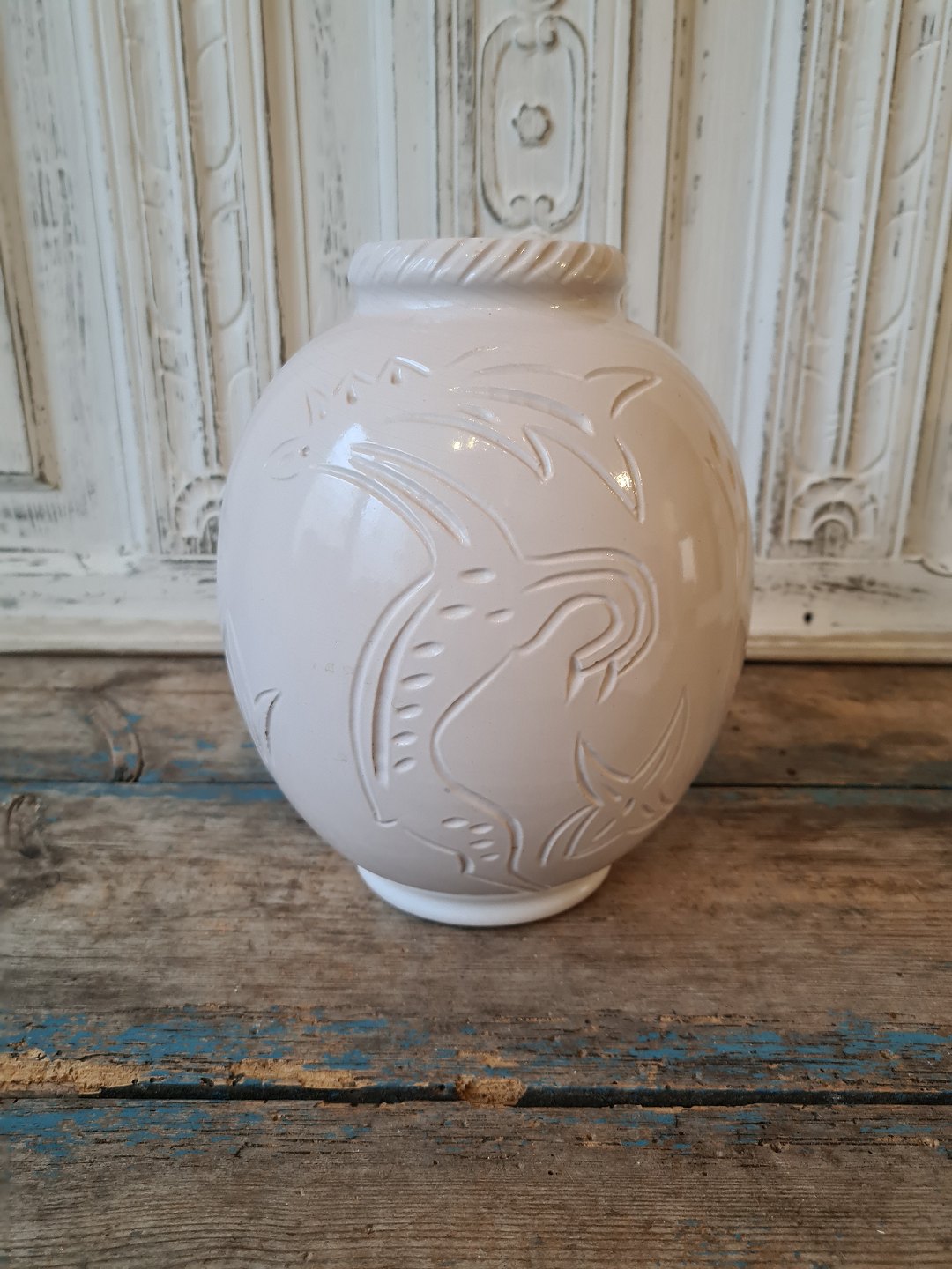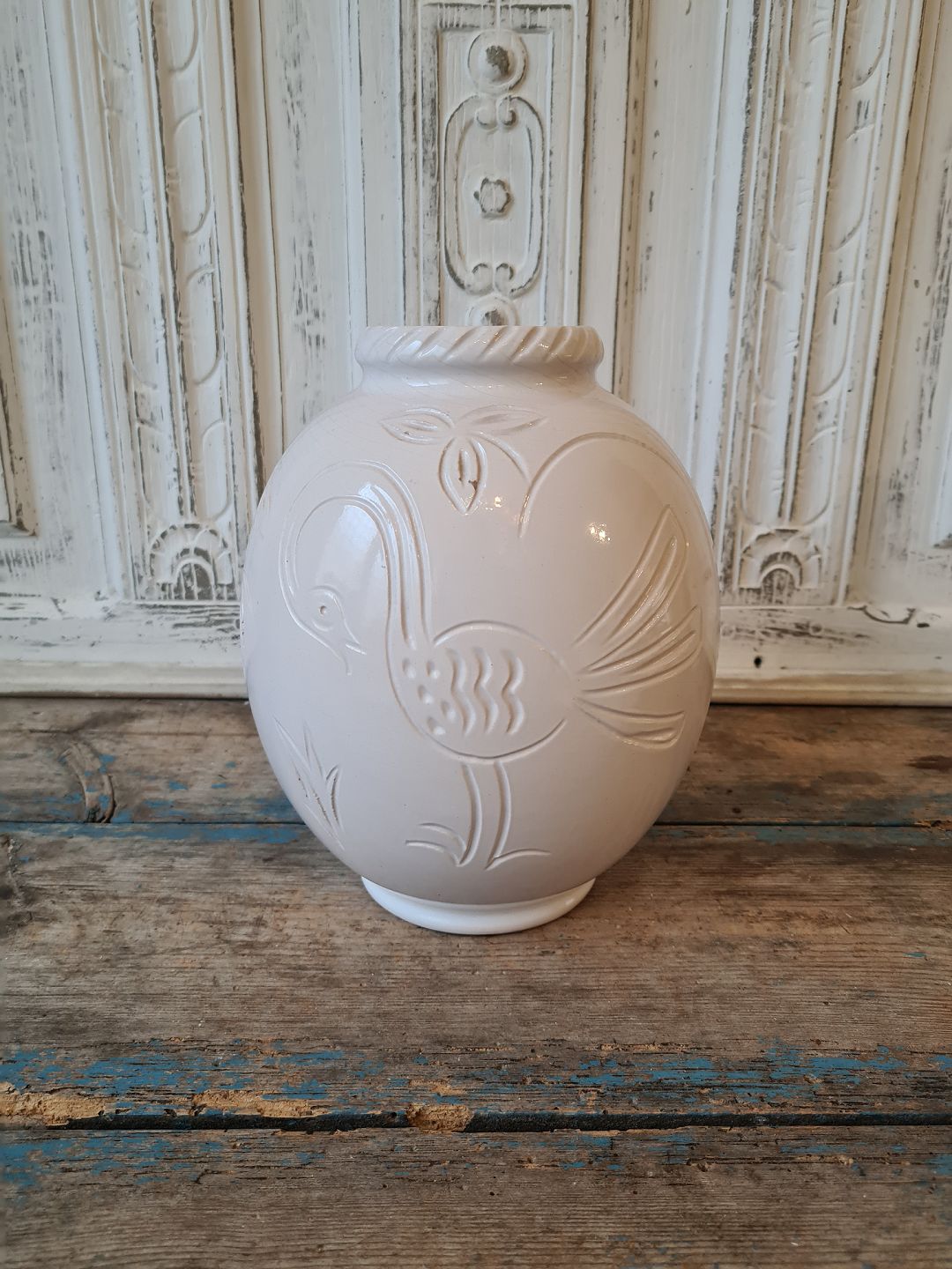 Michael Andersen stor hvid glaseret vase dekoreret med fugle og blade