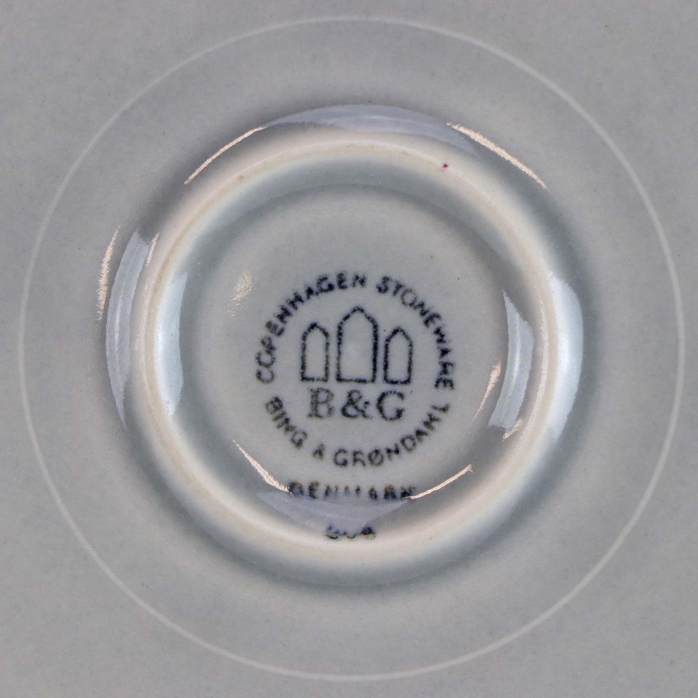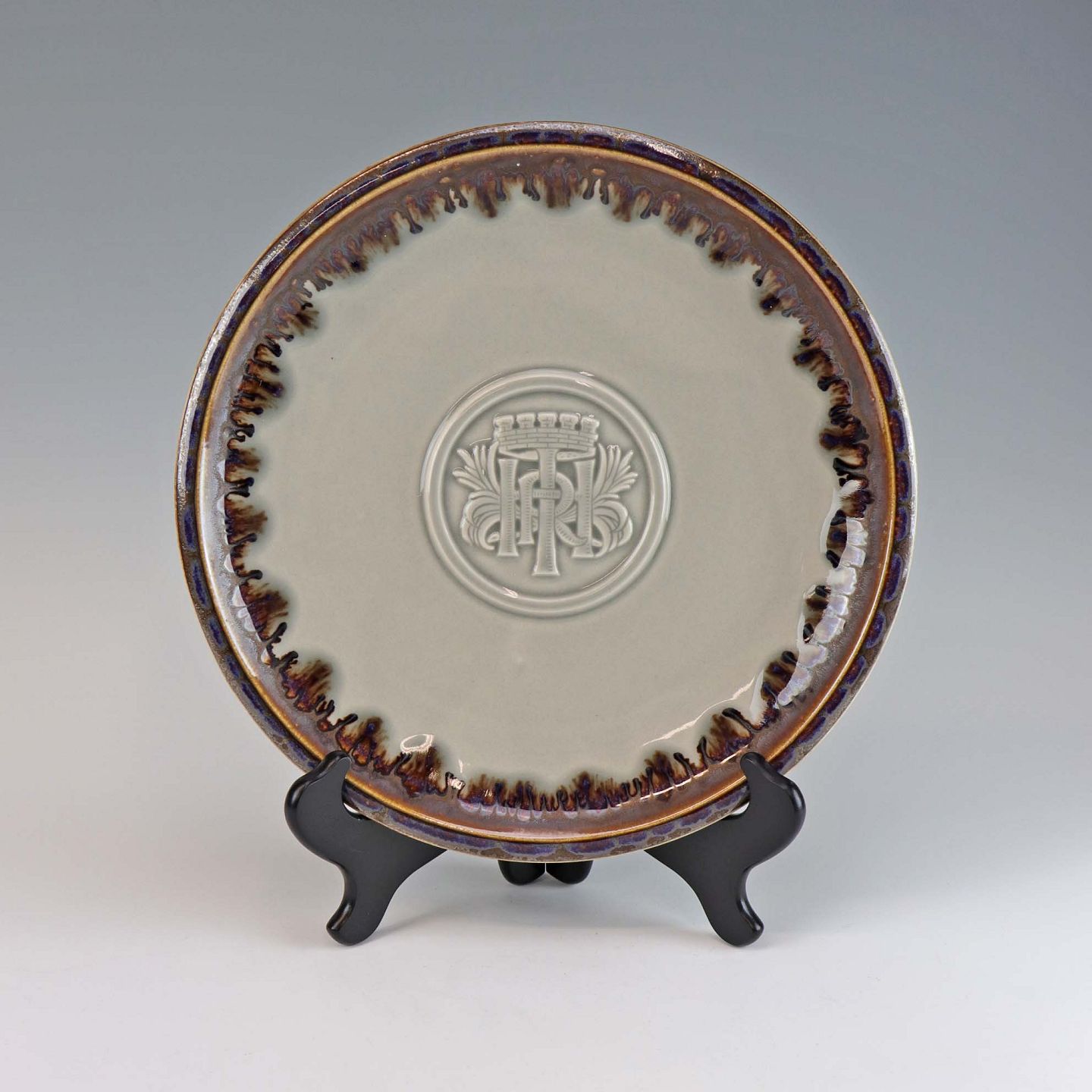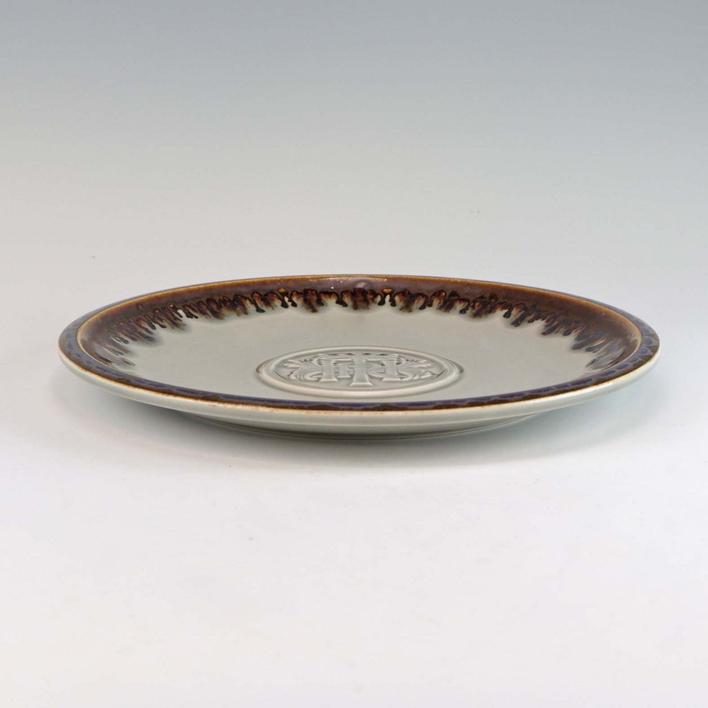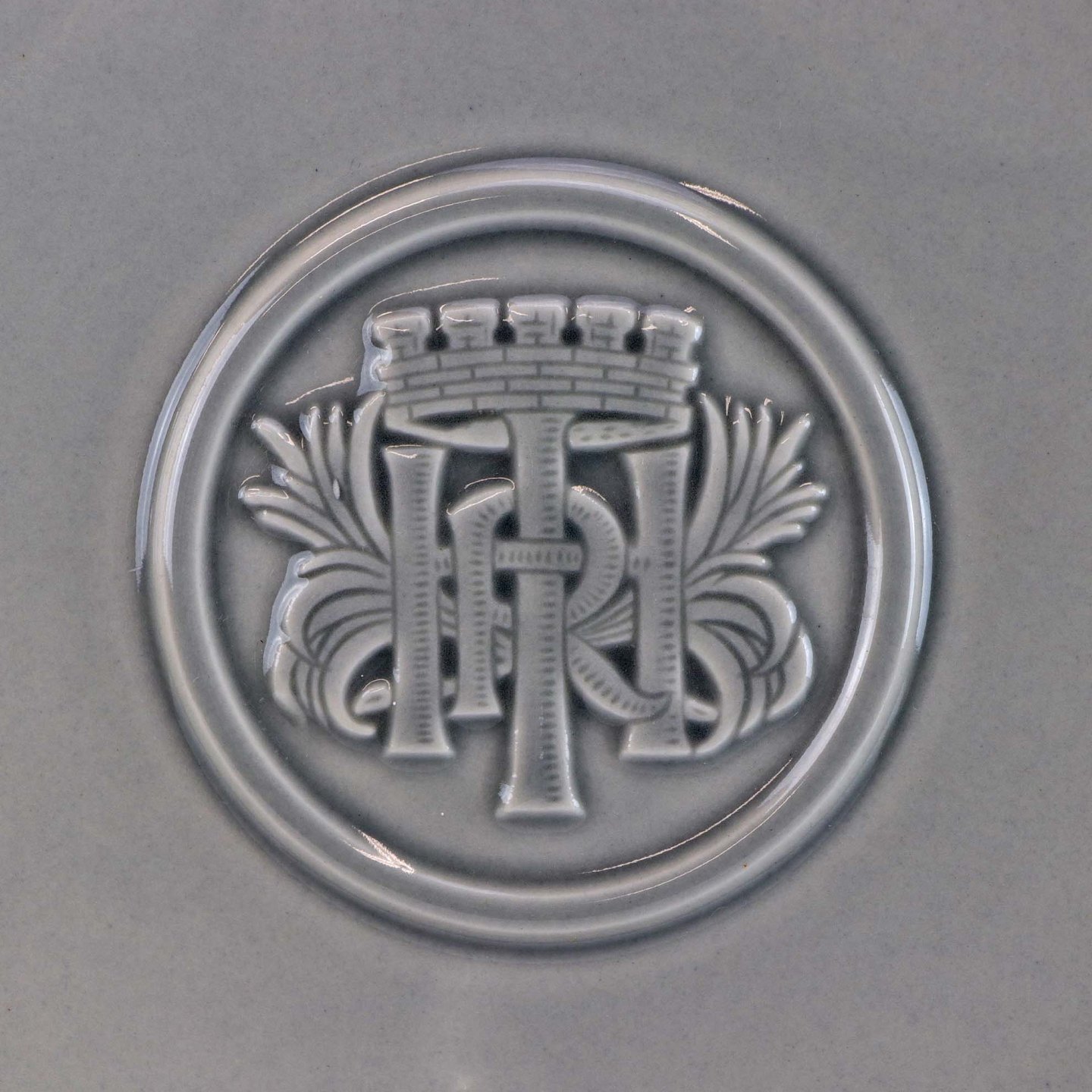 Rundt fad med monogram af stentøj fra stellet Mexico.