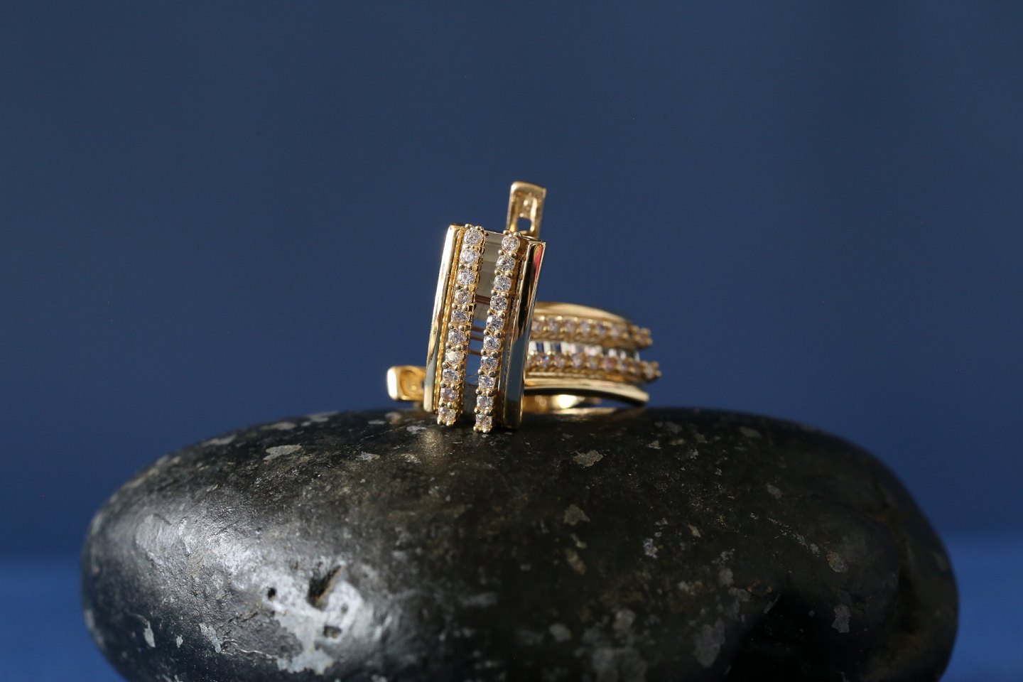 Beautiful gold earrings in 14 carat gold, stamped 585, with inlaid clear stones in two rows. A pair of beautiful classic earrings that really add style. The light is captured beautifully in the small stones and reflected. This makes these earrings an elegant piece of jewelry to wear.