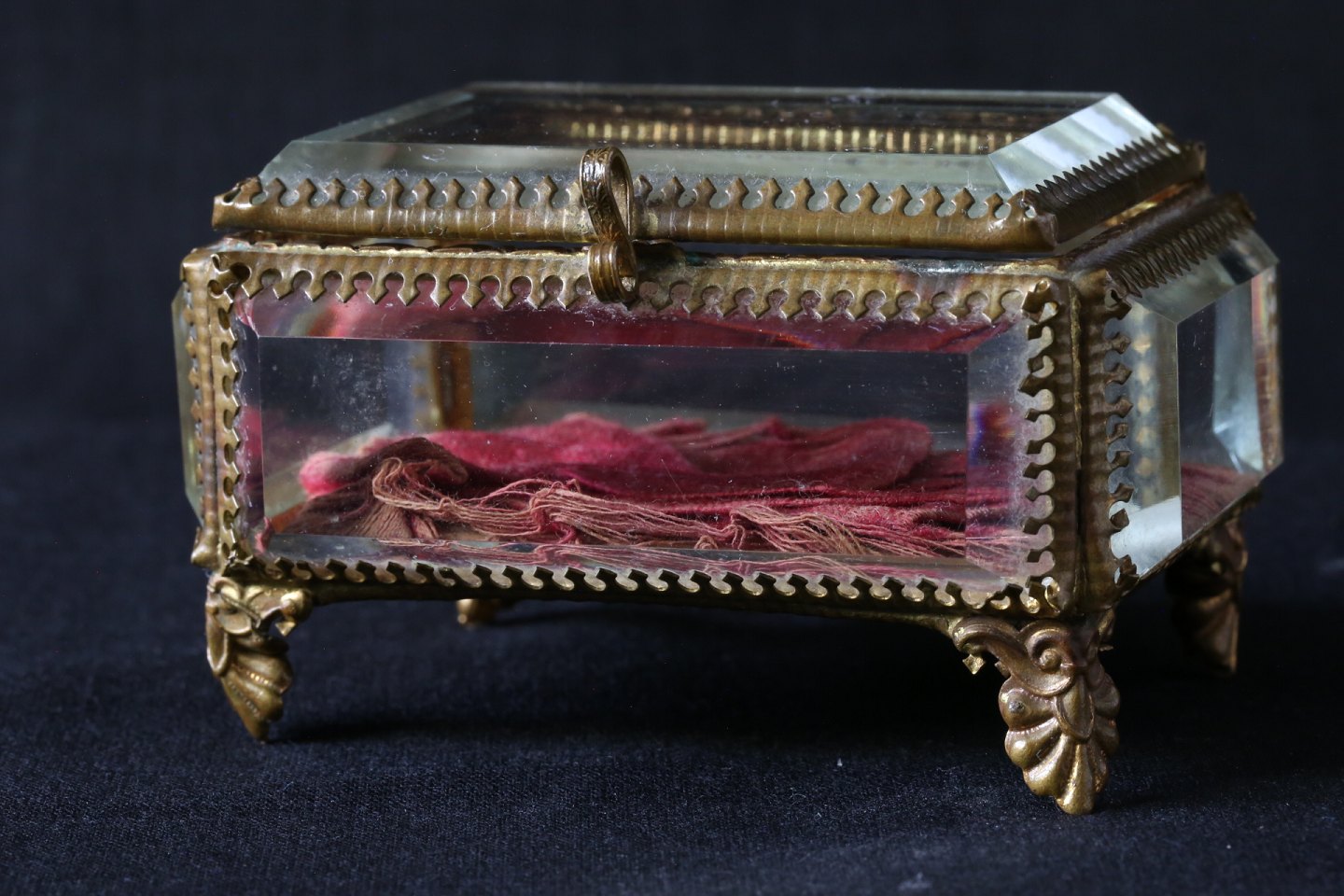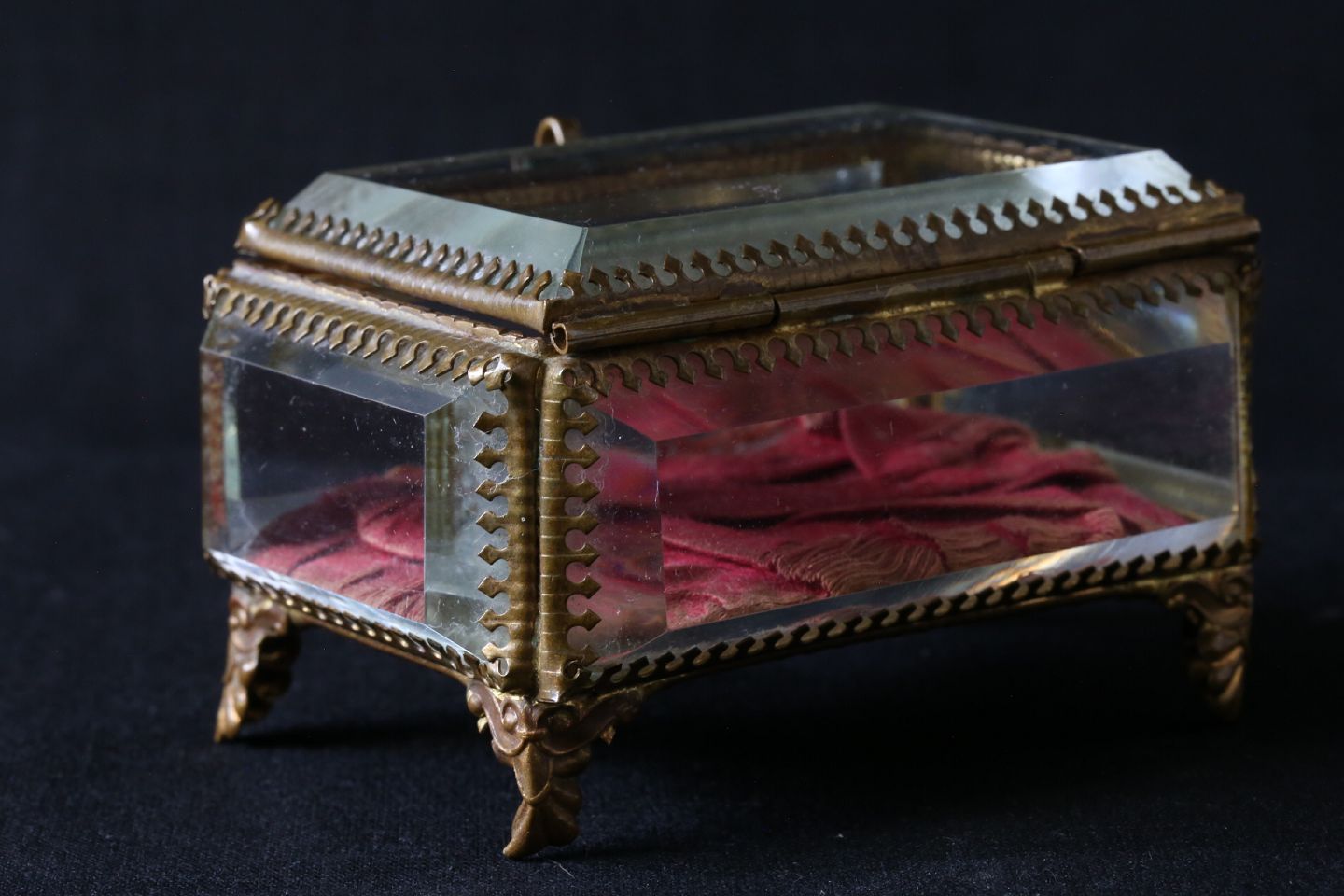 Small jewelery box with faceted glass, in antique look, Very elegant.