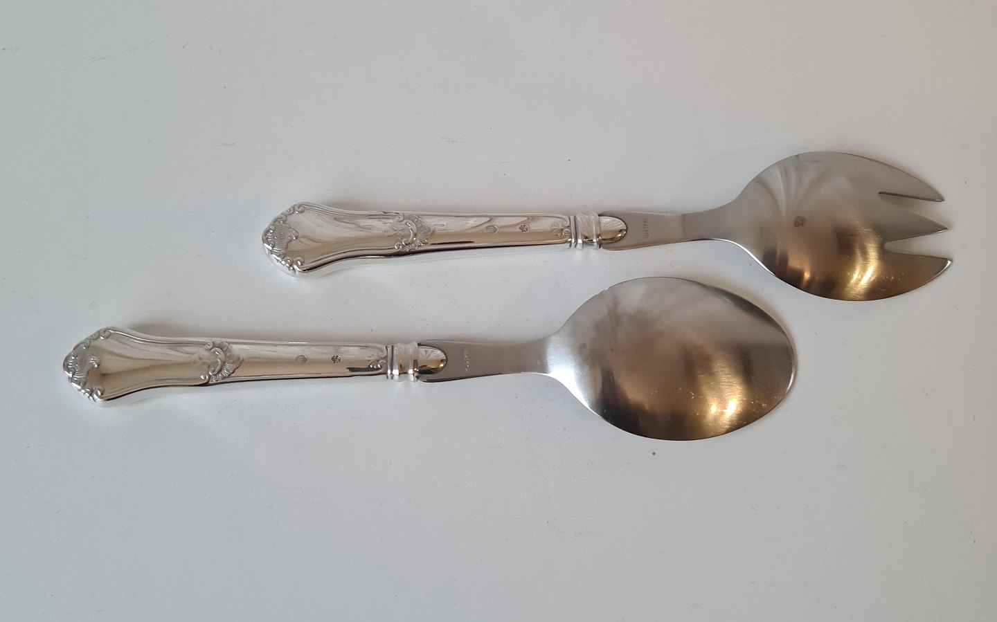 Rosenholm salatbestik i sølv og stål 20,5 cm.