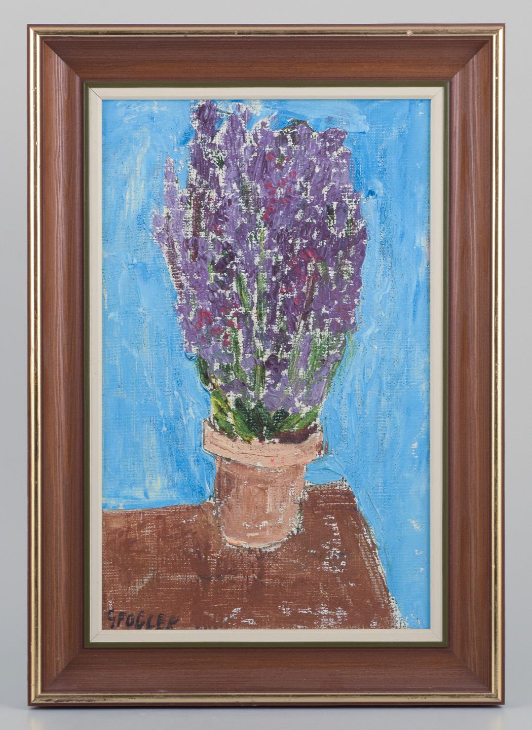 Göta Fogler (1919-1992), Sweden. Oil on canvas. Modernist still life with flowers in a pot.