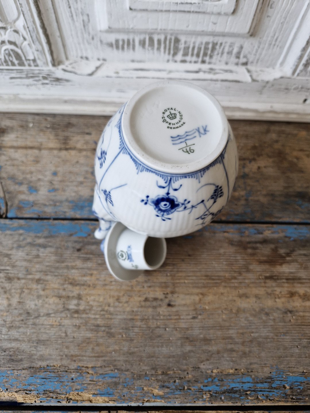 Royal Copenhagen Musselmalet riflet lille kaffekande no. 46