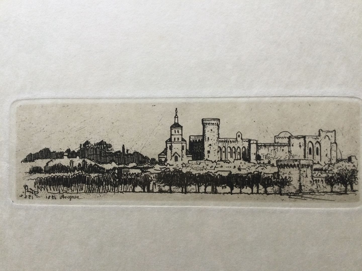 Radering af Peter Tom-Petersen - Parti fra Avignon 1921-22.