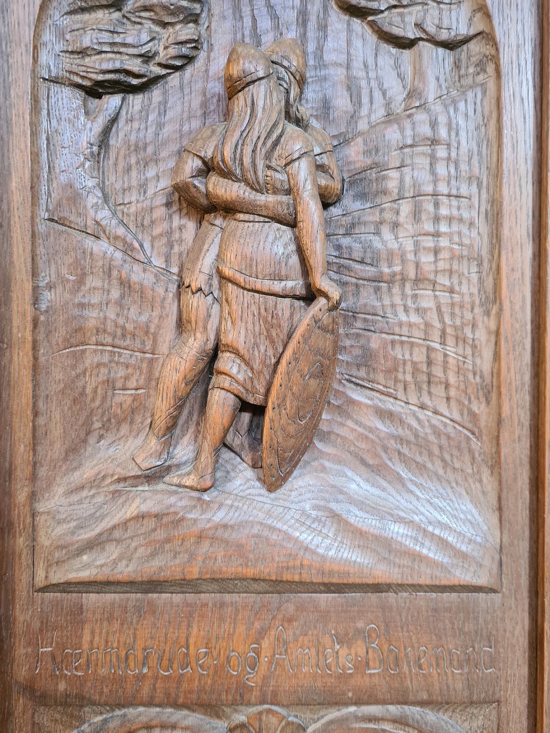 Skab i fineret og massivt egetræ med motiver af Hamlet, fra 1930erne.