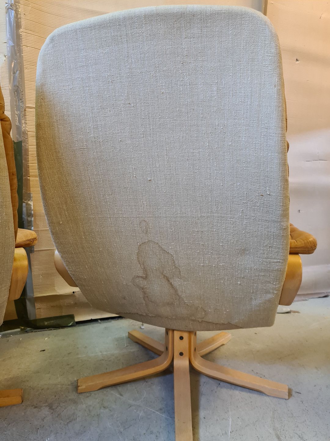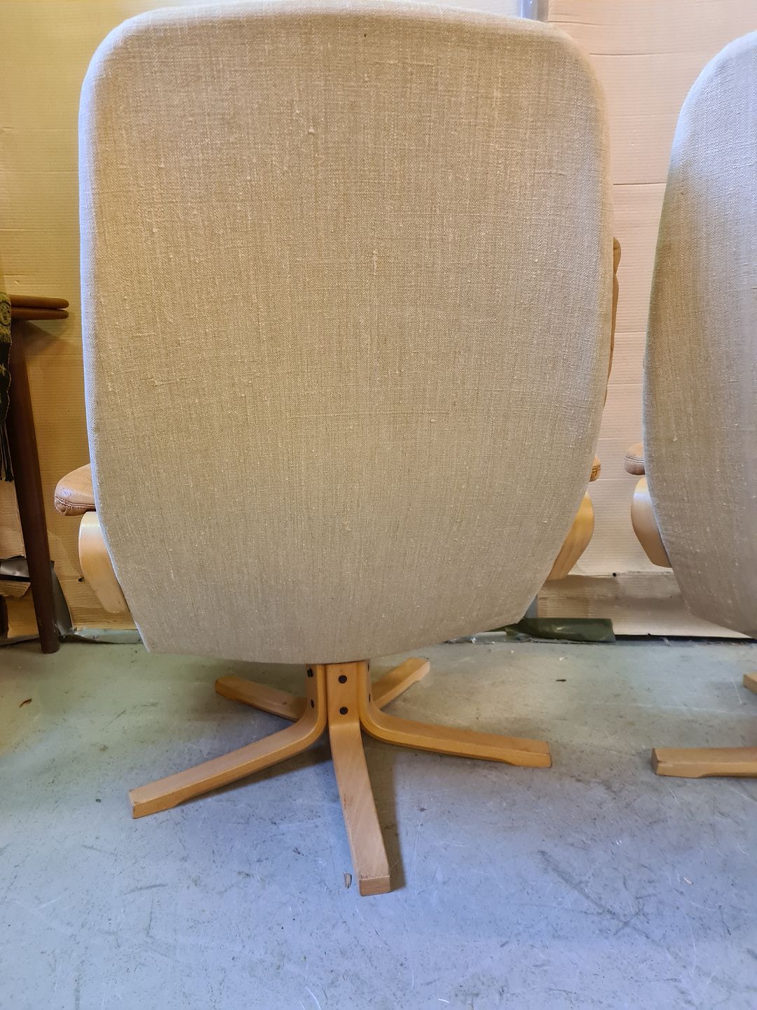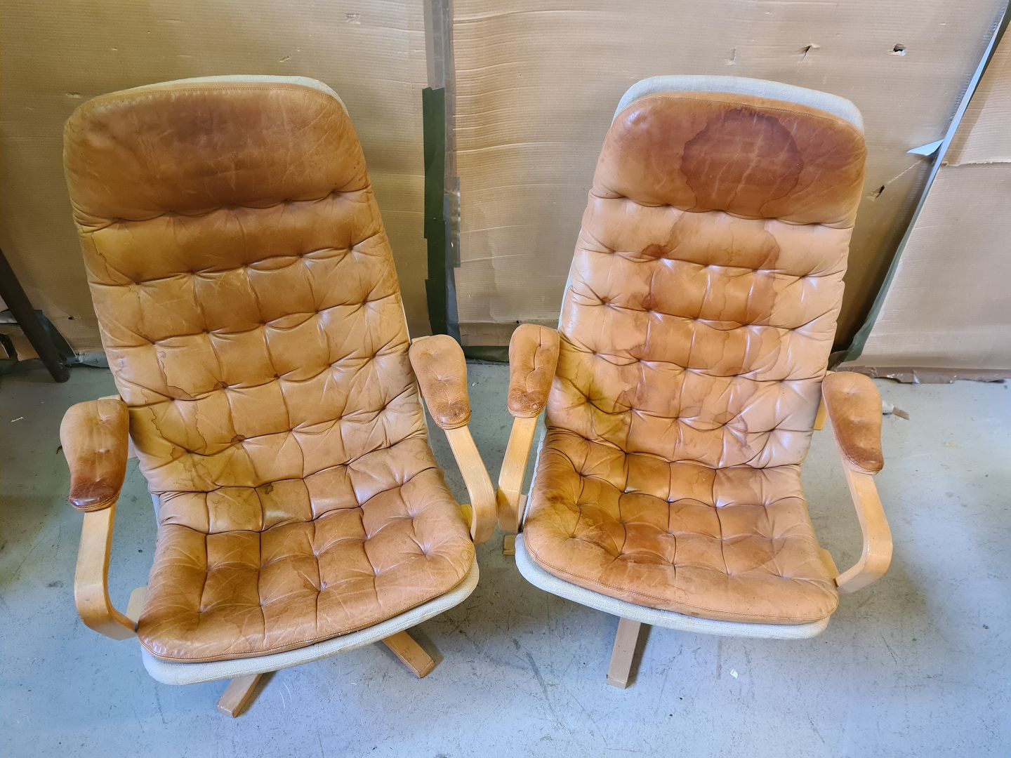 2 Lænestole i bøgetræ og læder, fra 1980erne.
