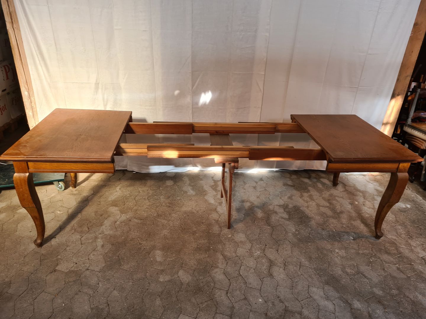 Spisebord i massivt egetræ med 3 tillægsplader, fra 1920erne.