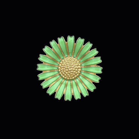 A. Michelsen Marguerit / Daisy Broche i forgyldt sterling sølv med grøn emalje - 33mm.