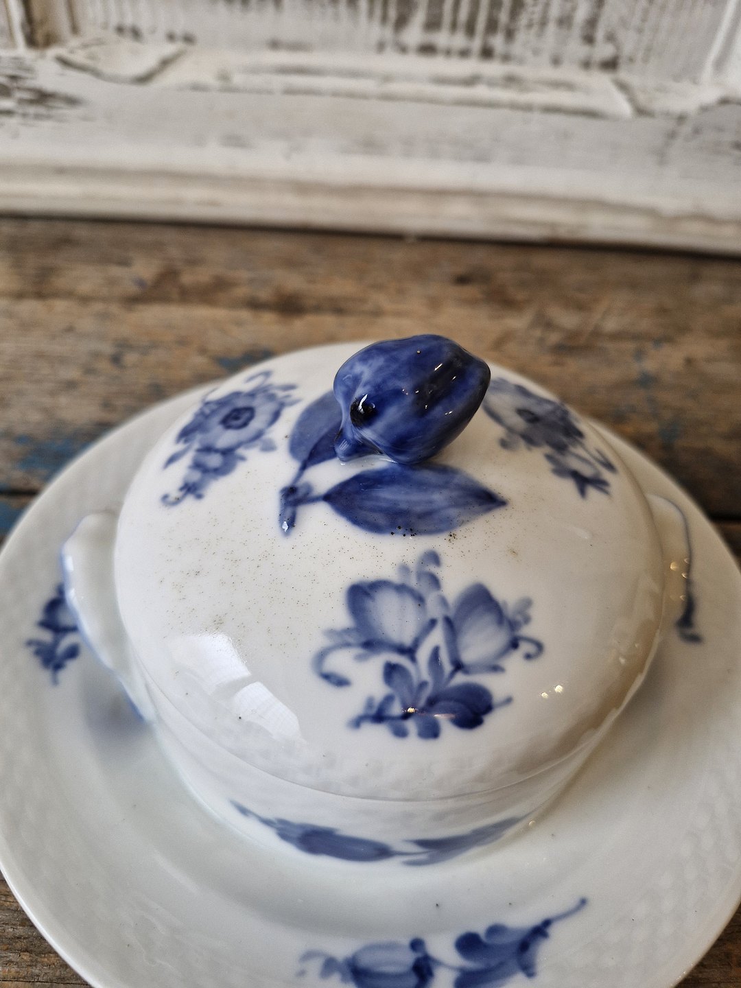 Royal Copenhagen Flettet Blå Blomst smørskål på fast underfad