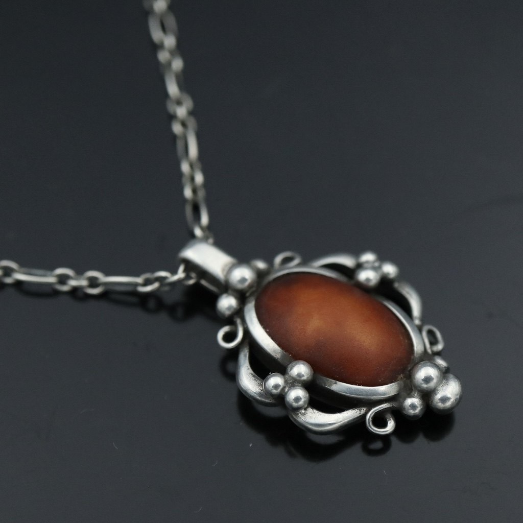 Georg Jensen. vedhæng i sterlingsølv med rav.
