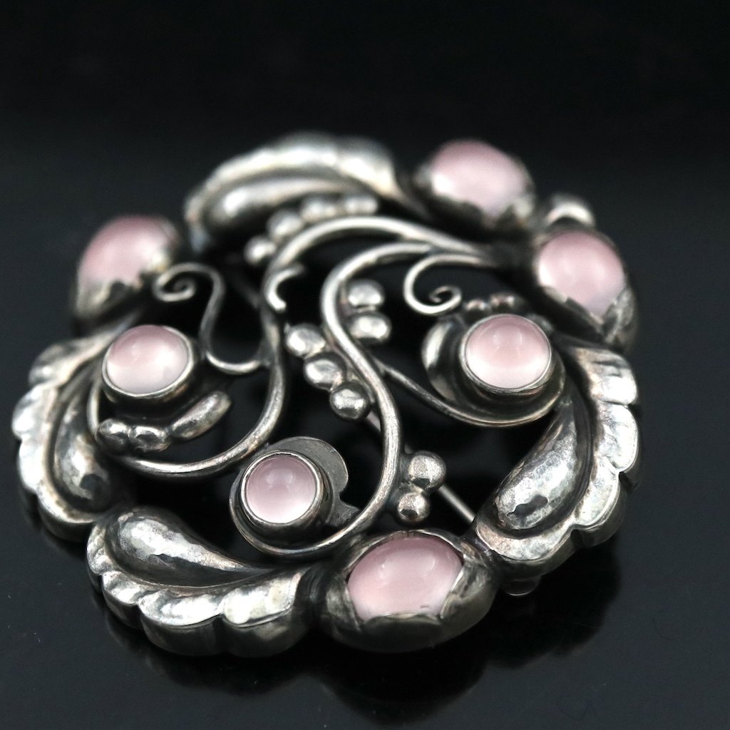 Georg Jensen. Broche i sterling sølv med rosa kvarts #159