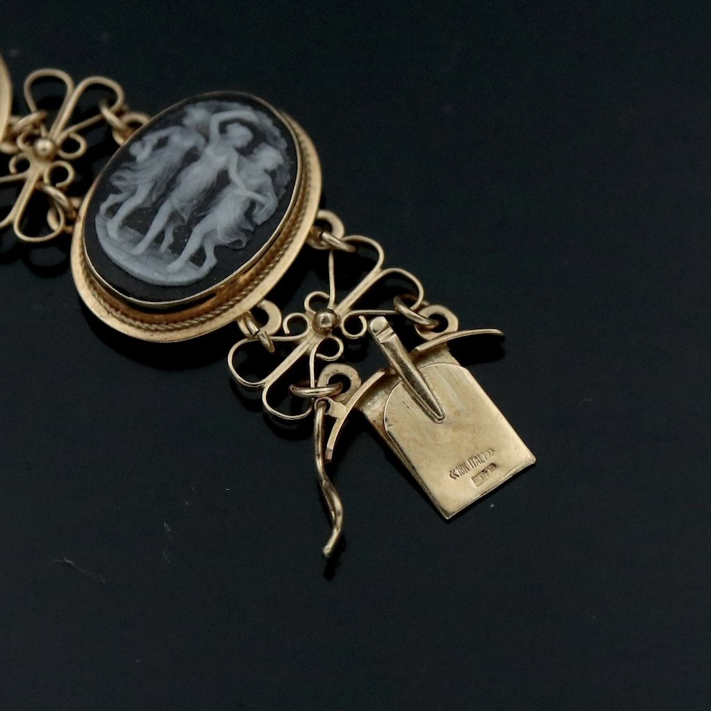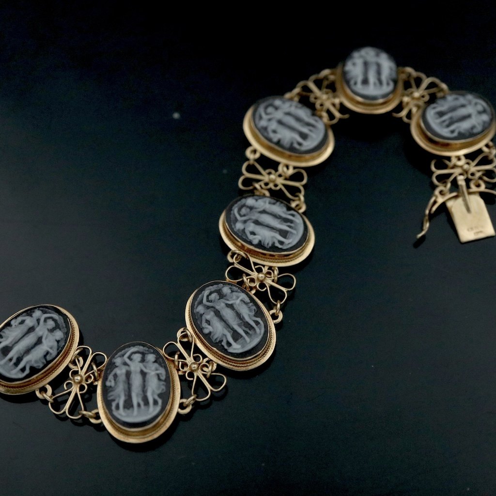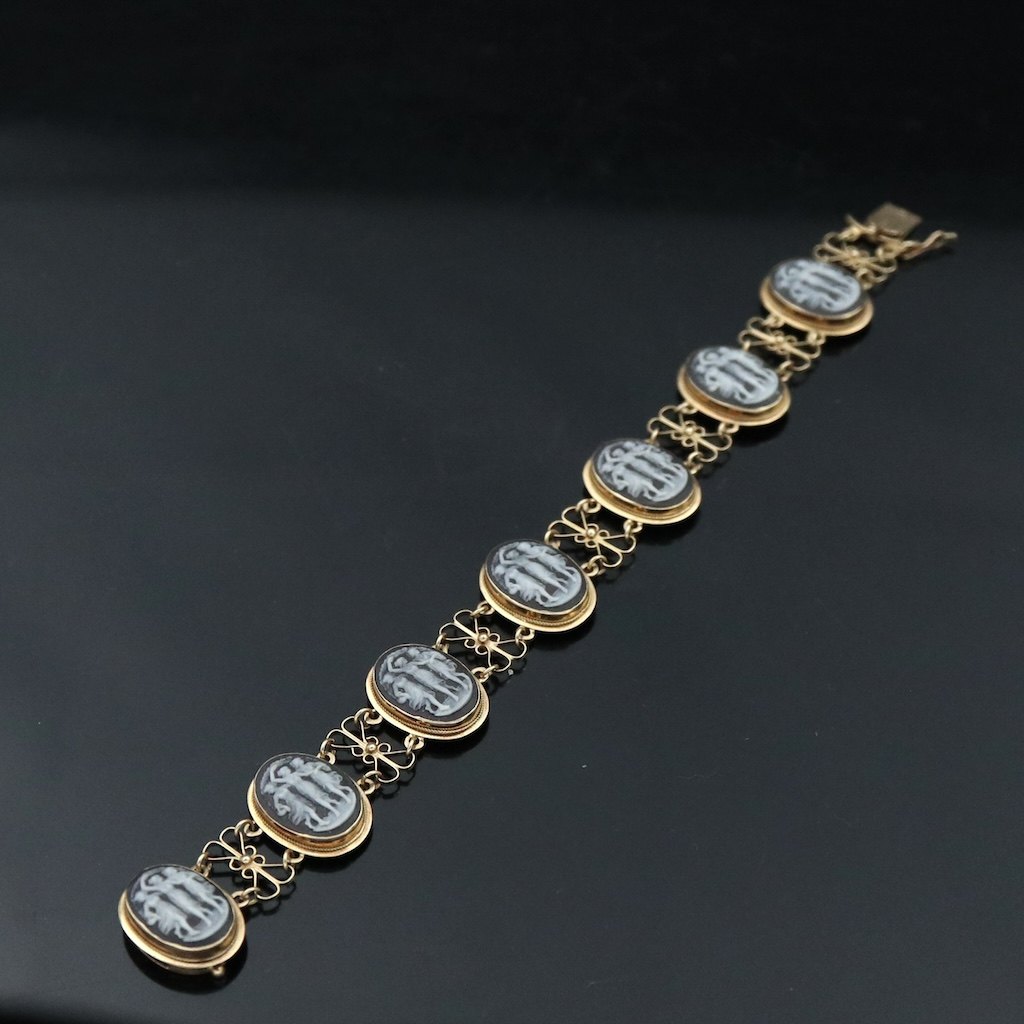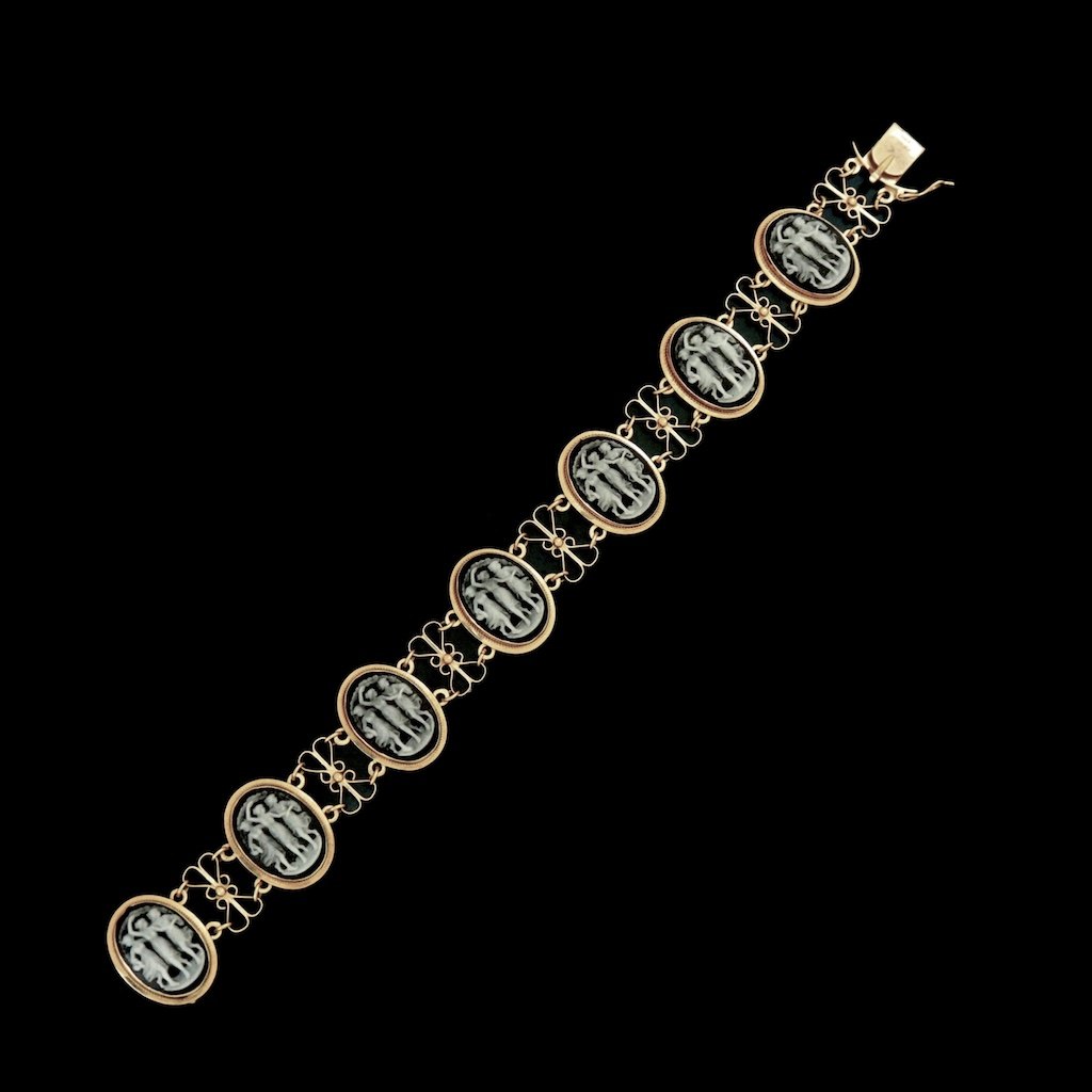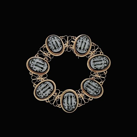 Armbånd i 18k guld med kamé-udskæringer.