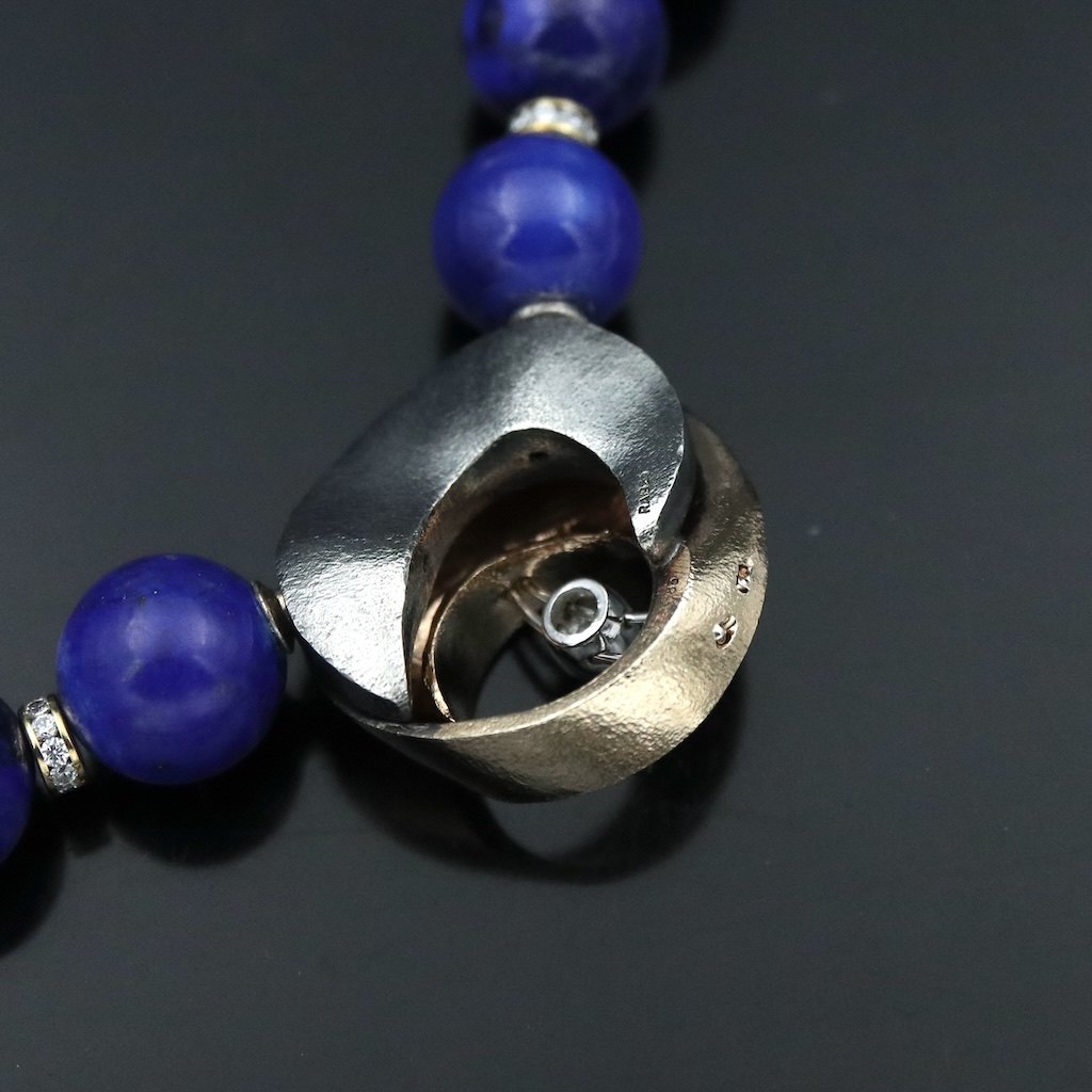 Lapis Lazuli perlekæde med diamantlås i 14k guld og sterlingsølv.