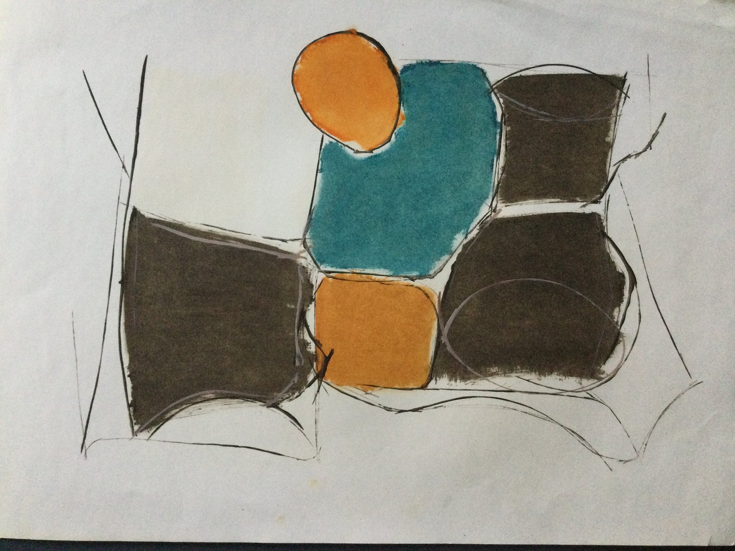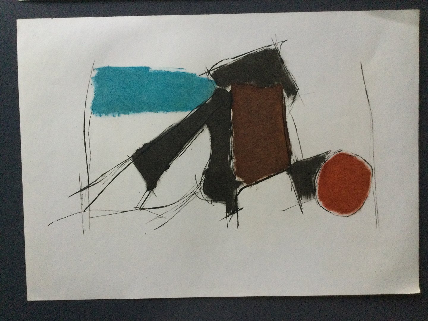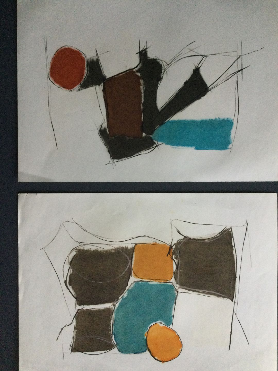 Litografier med efterbehandling af Erik Otto Larsen - Abstraktion 1972.