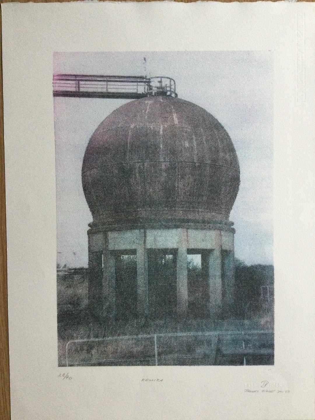 Farvelitografi af Lars Pedersen og Thomas Birket-Smith - KEMIRA Ammoniaktank 2005.