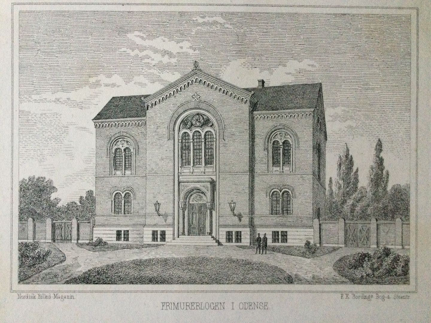 Text available in Danish: Radering af F.E. Bording - Frimurerlogen i Odense ca. 1880.