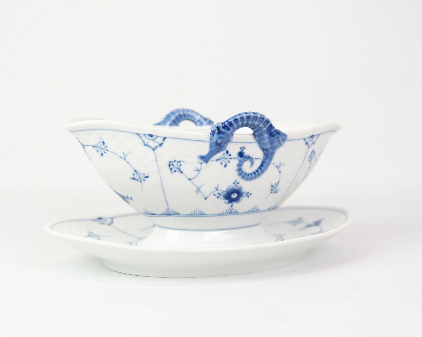 Sauce bowl no. 8 from Bing & Grondahl. Made of porcelain with classic blue painted blue fluting decoration.