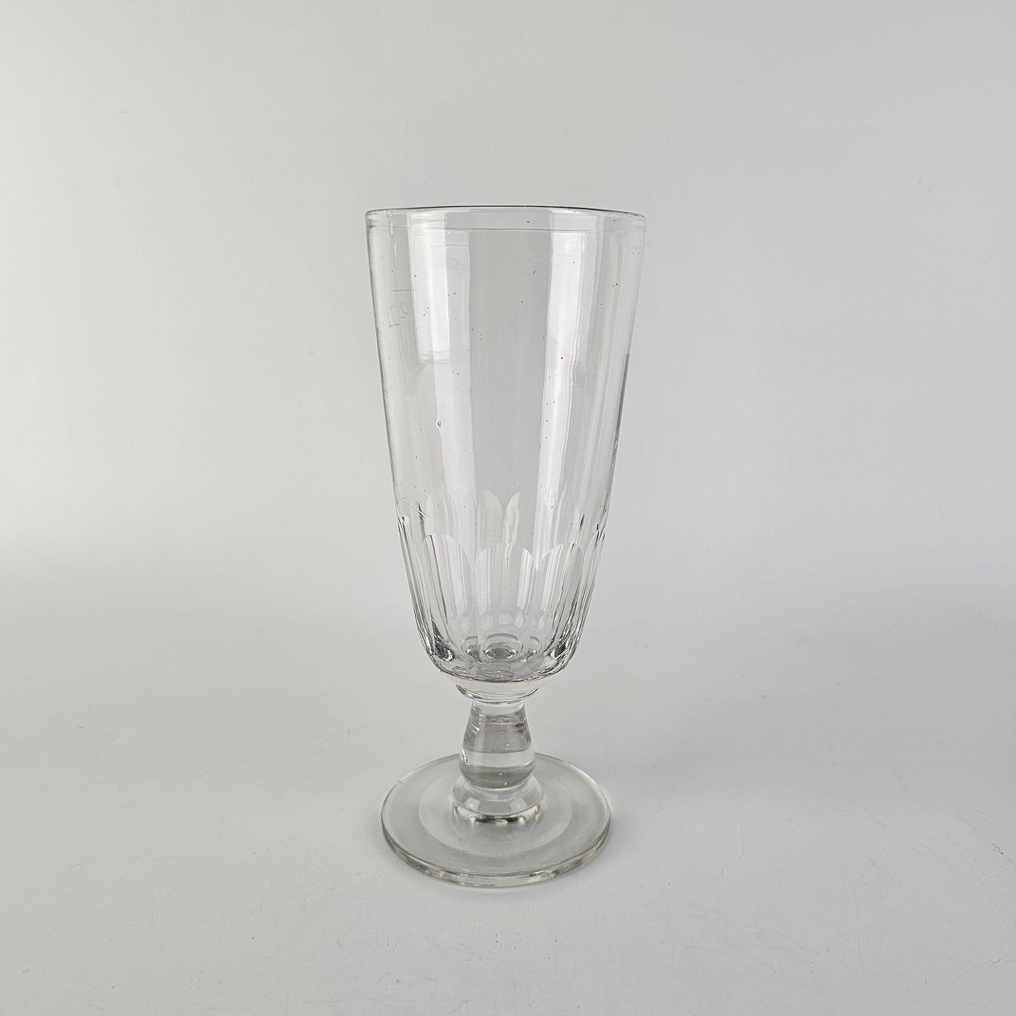 Vinglas i klart glas, opdrevet og kugleslebet i bund. Med olivenslibninger