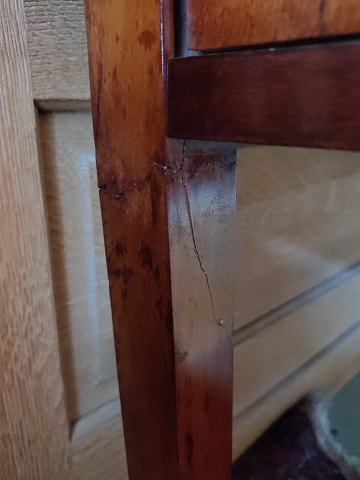 Den er stabil og har patina, men bagbenene har været limet.