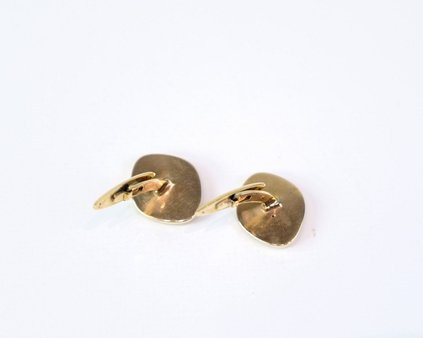 Manchetknapper i 14 kt. guld, stemplet 585. Rillet design. L: 2 cm, Dia: 1,5 cm. Vægt: 6,7 g. Klassisk herresmykke.