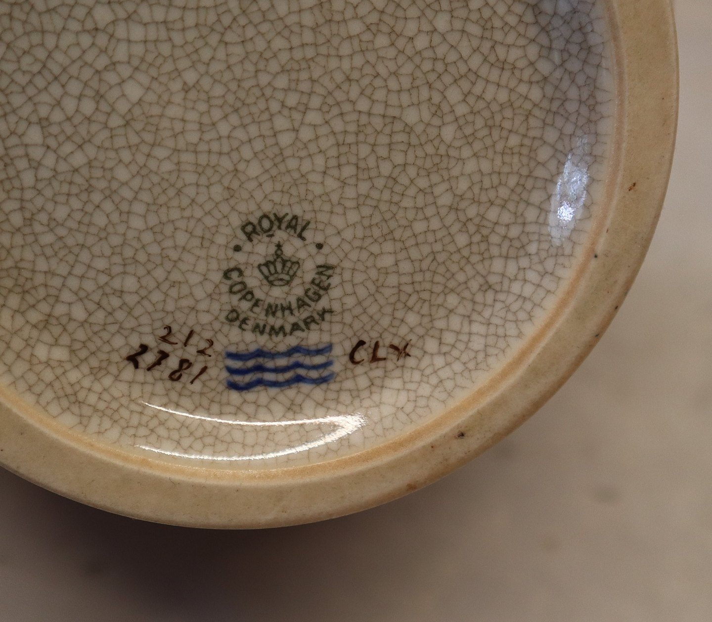 212-2781 Kgl. Lågkrukke med gråt, orange og guld 25 cm Lågvase Craquelé fra Royal Copenhagen I hel og fin stand Urne