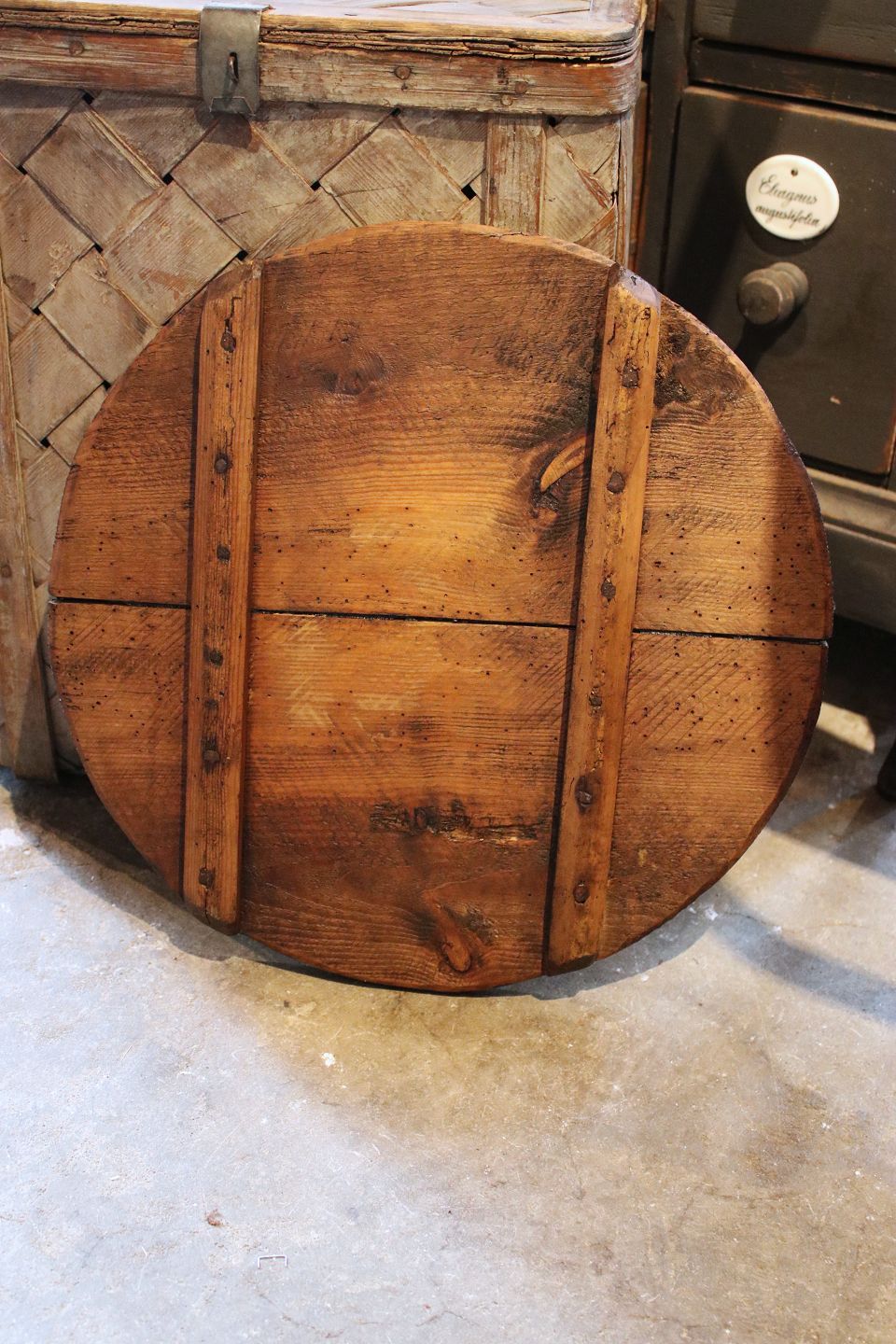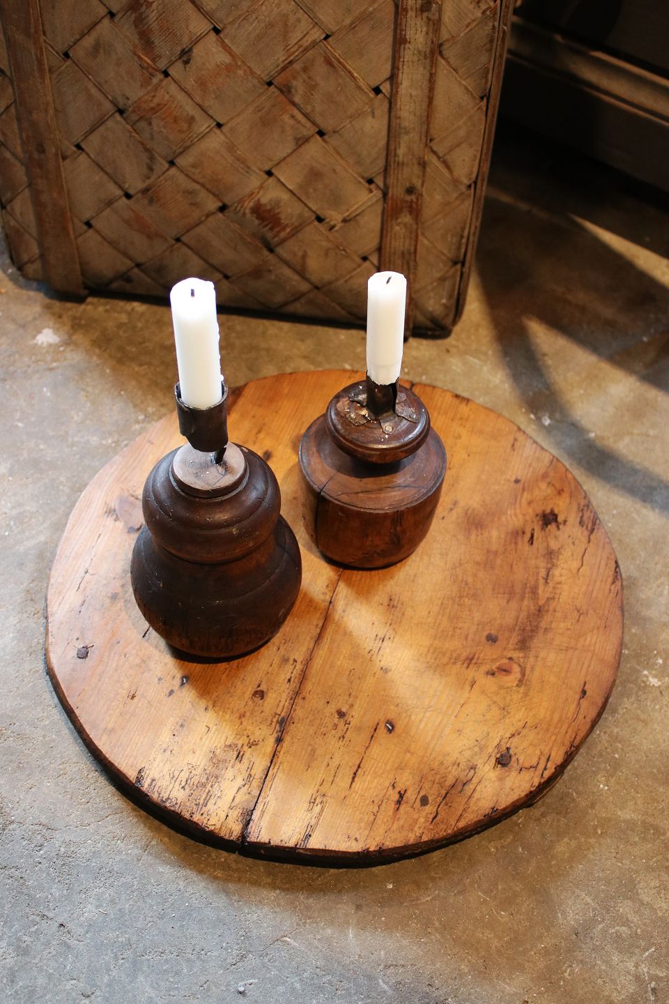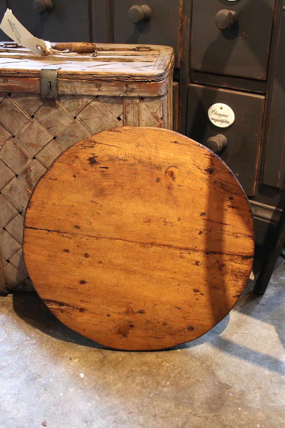 Svensk 1800 tals rund træplade i træ med en rigtig fin patina.
