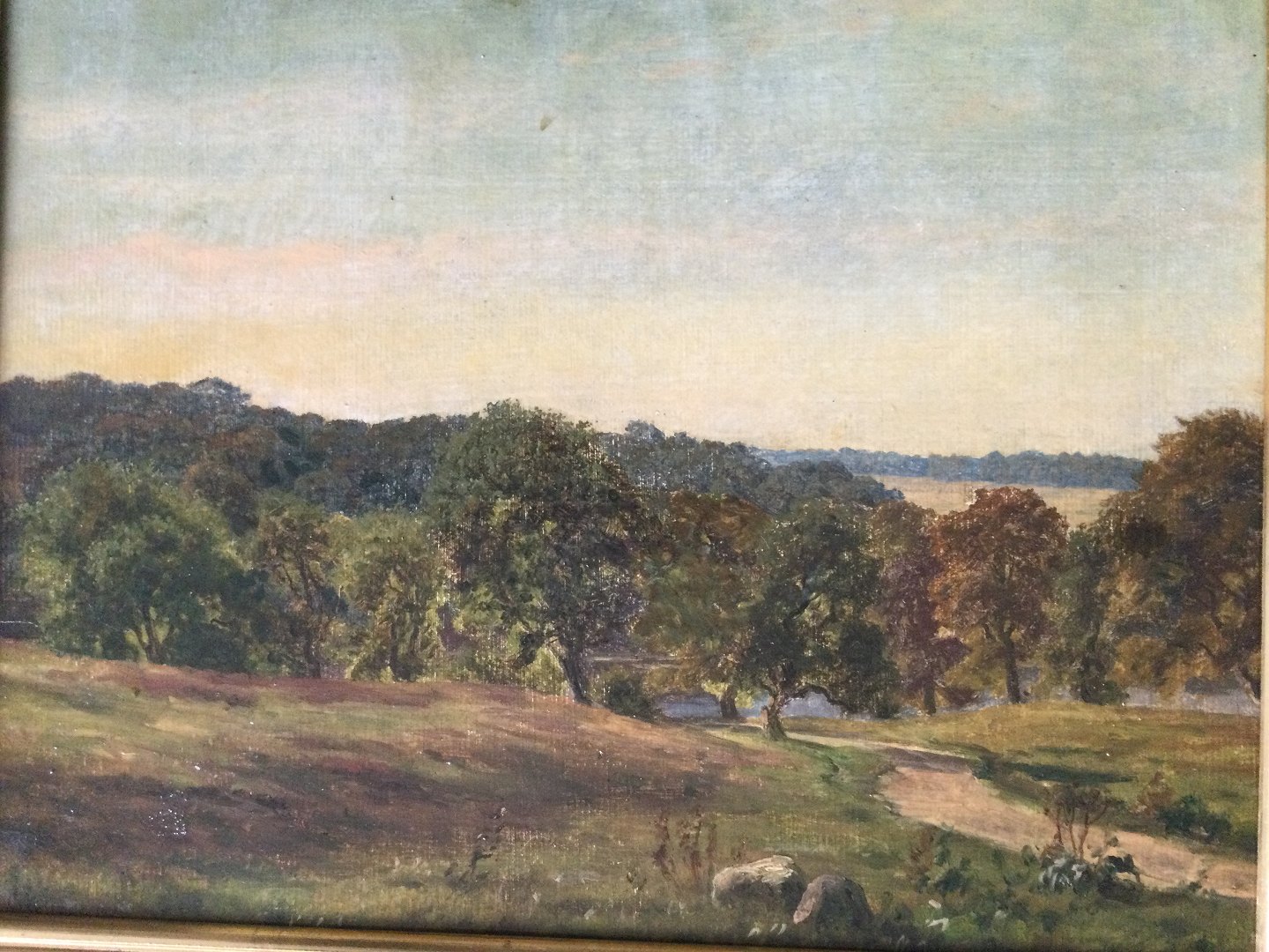 Maleri af Carsten Henrichsen 1865 - Landskab med sø.