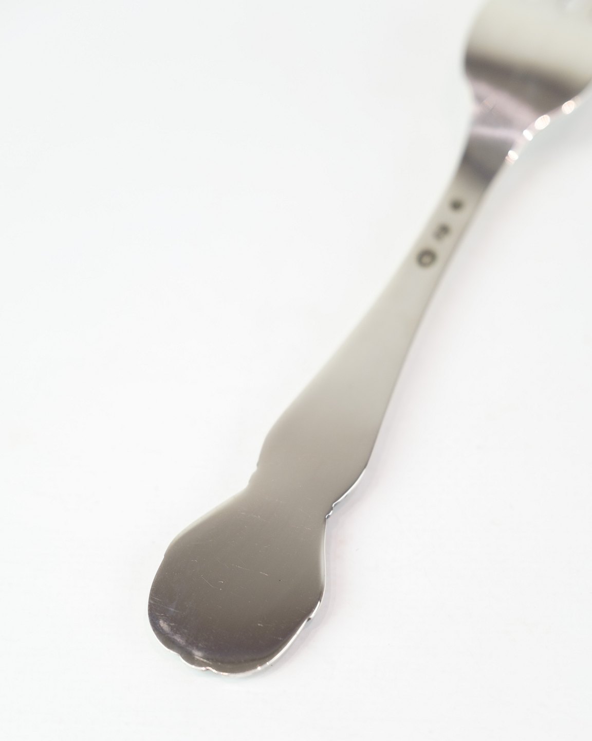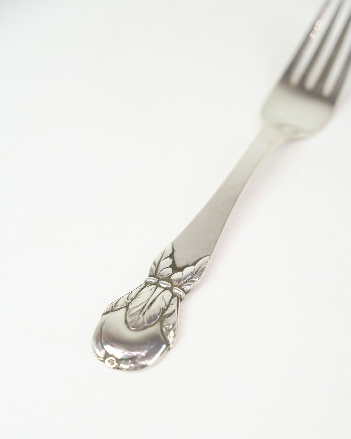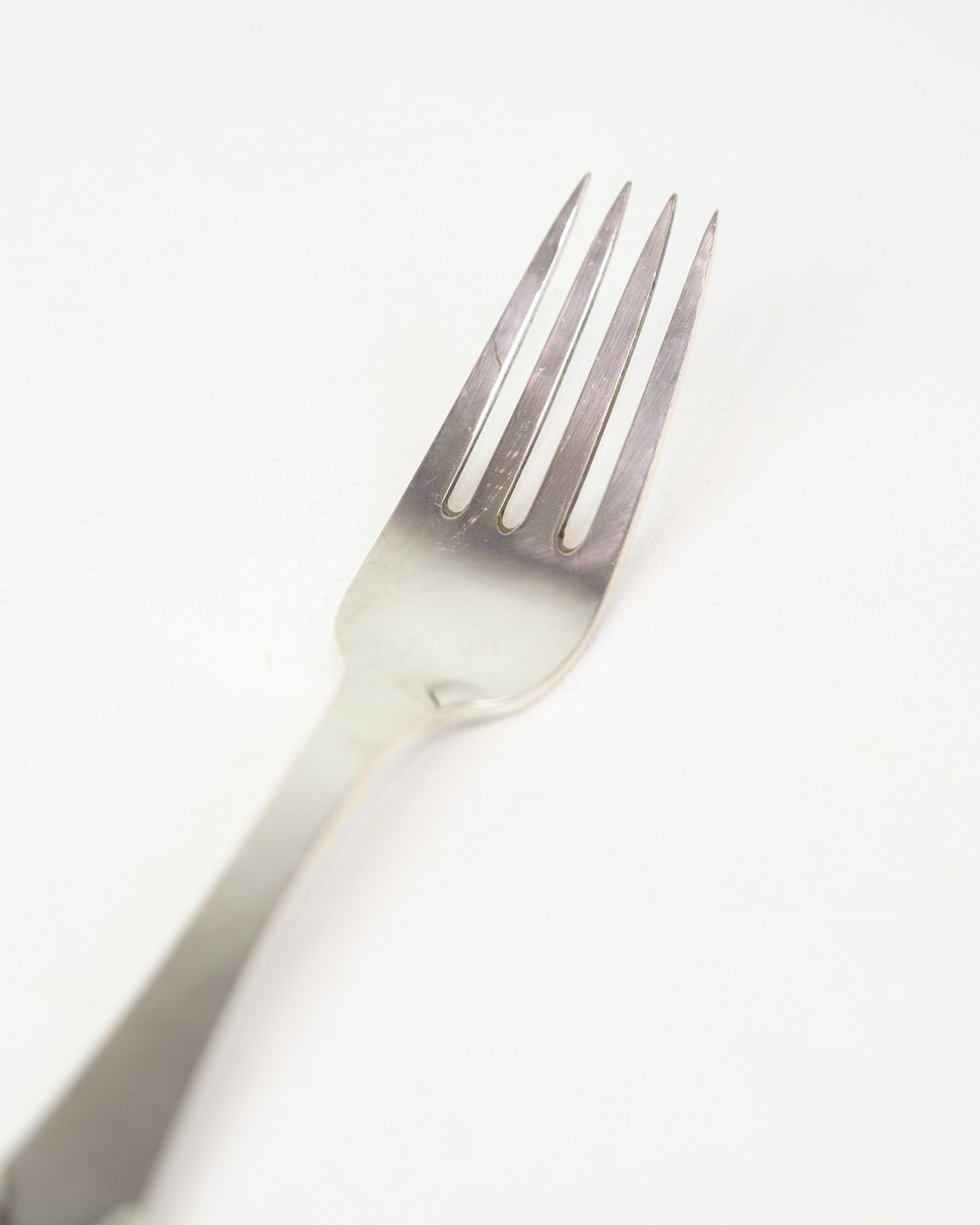 Spisegaffel fra A.C. Illum, København. Tretårnet sølv stemplet 825, ca. midt 1900-tallet. Længde 20 cm. Illum var kendt for høj kvalitet.