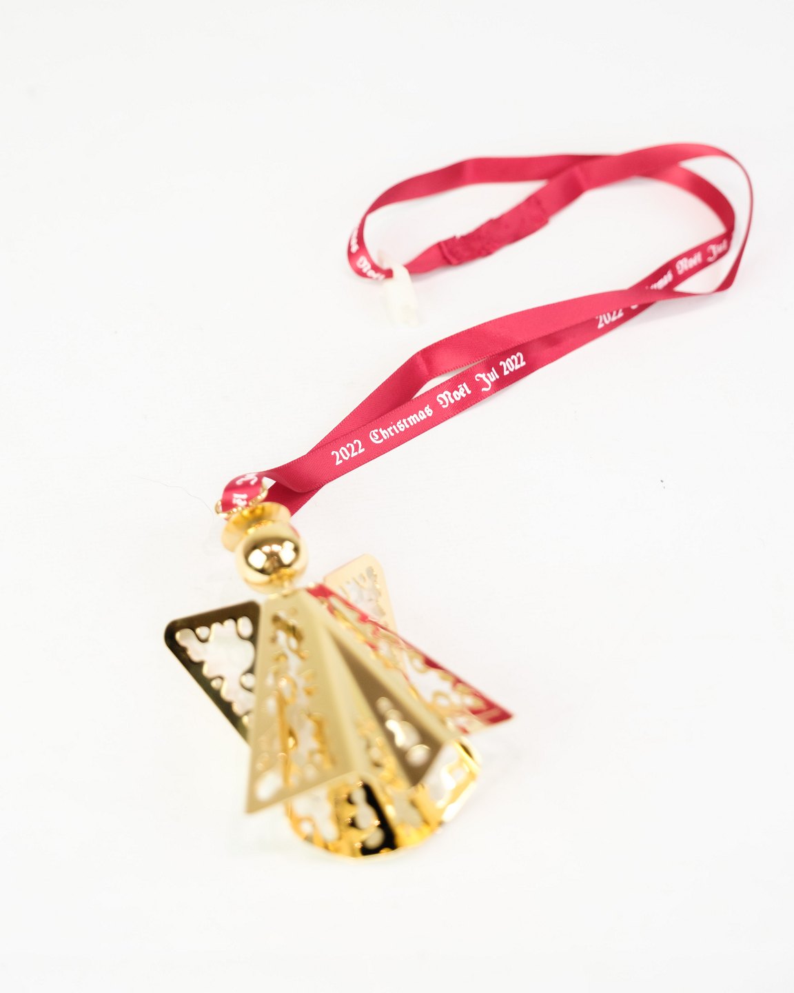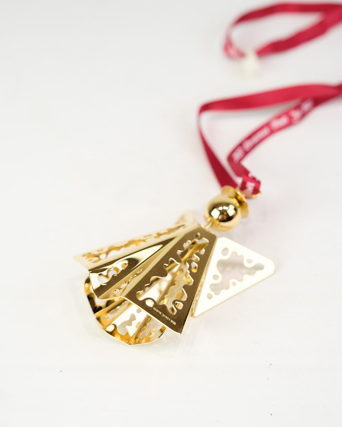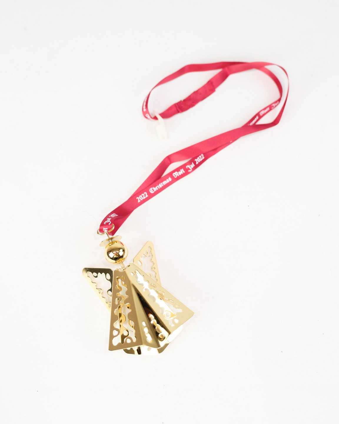 Georg Jensen juleuro fra 2022, udført som en engel med blonde i forgyldt metal. Designet viderefører traditionen med årlige juleuroer, som siden 1980’erne har været populære samlerobjekter verden over.