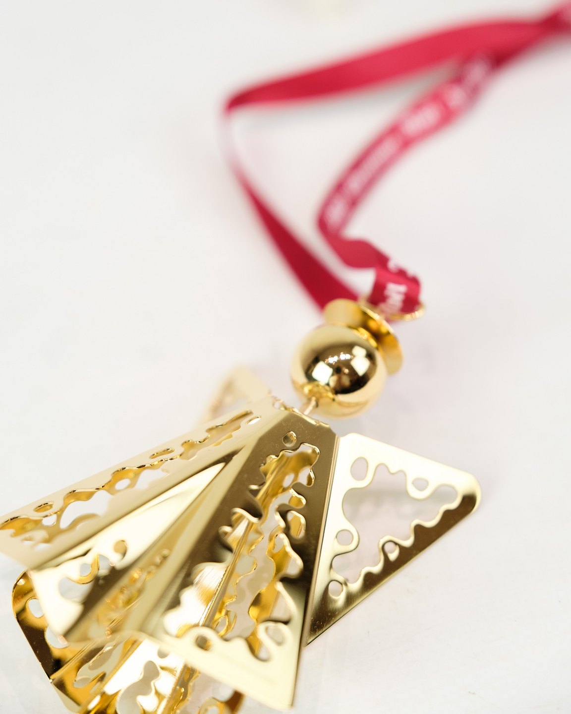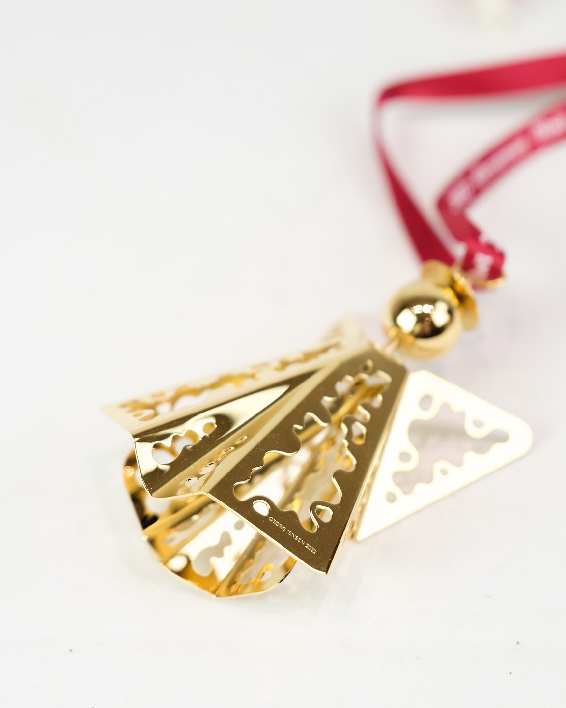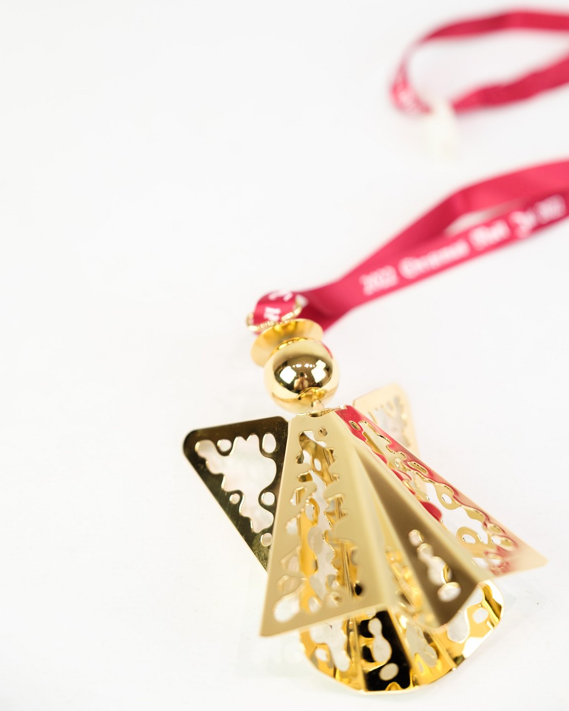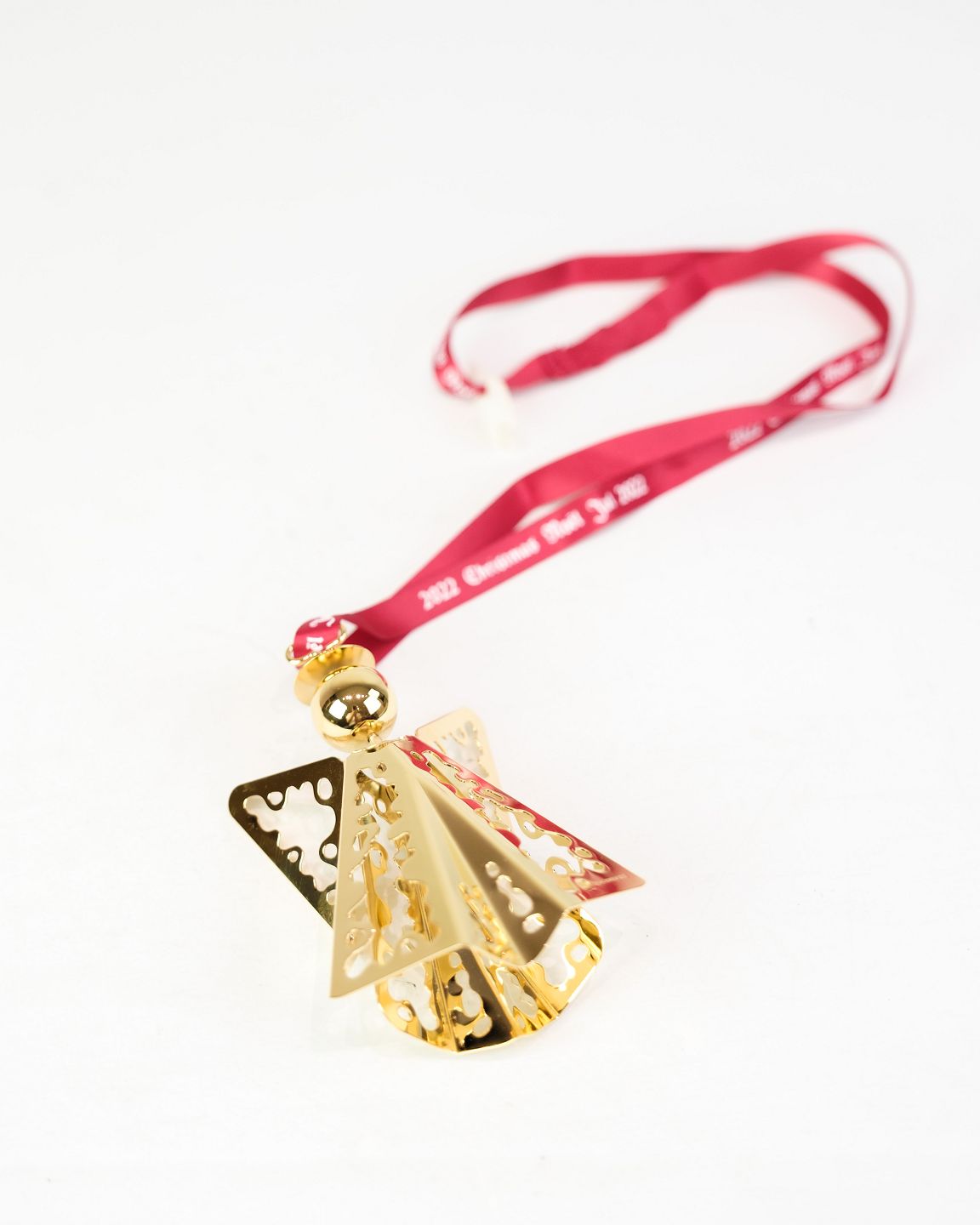 Georg Jensen juleuro fra 2022, udført som en engel med blonde i forgyldt metal. Designet viderefører traditionen med årlige juleuroer, som siden 1980’erne har været populære samlerobjekter verden over.
