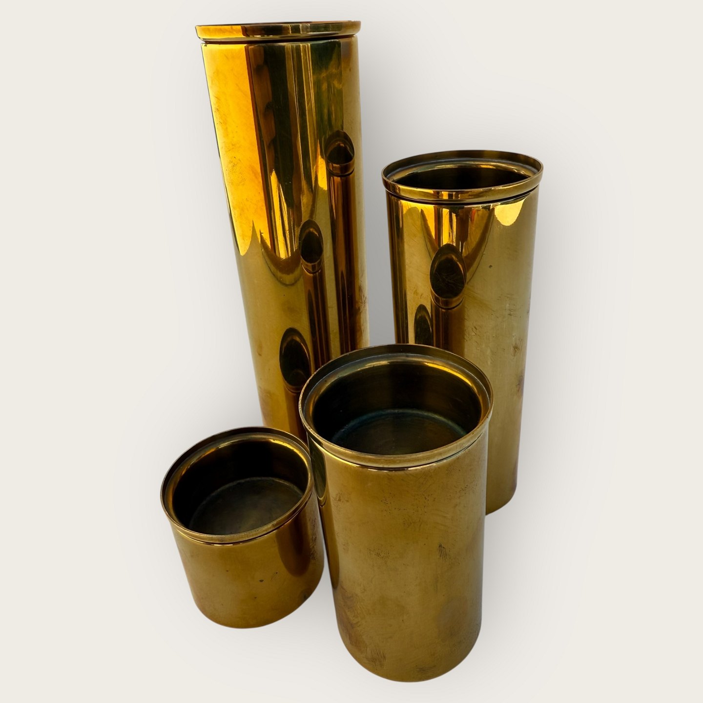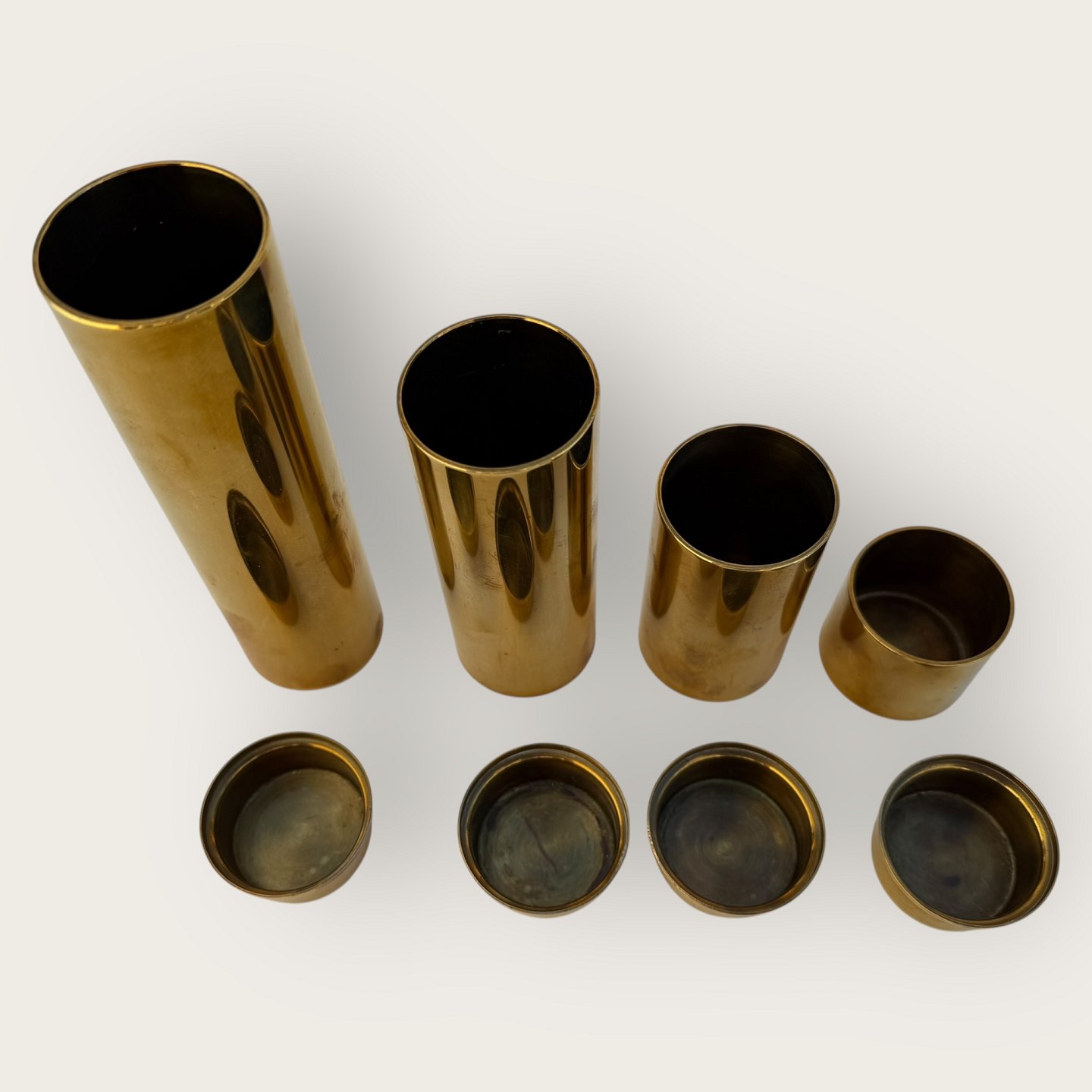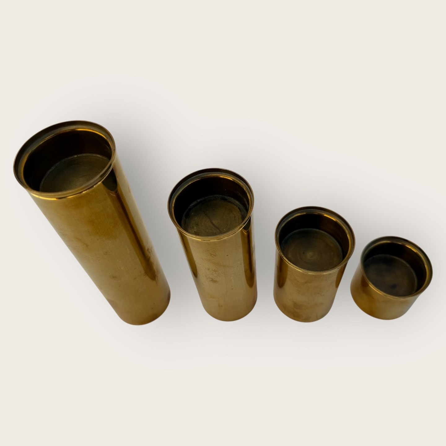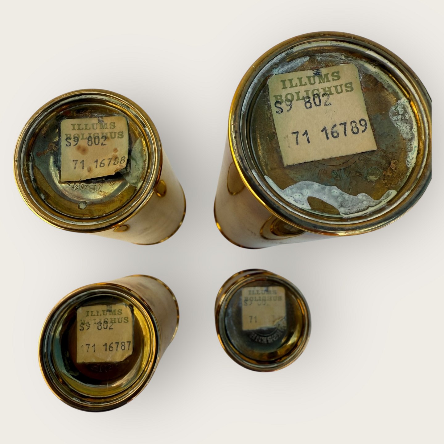 Peter Jensen A/S, 4 messing fyrfads lysestager solgt fra Illums Bolighus, pæn stand, Mål fra 4,5cm til 16cm