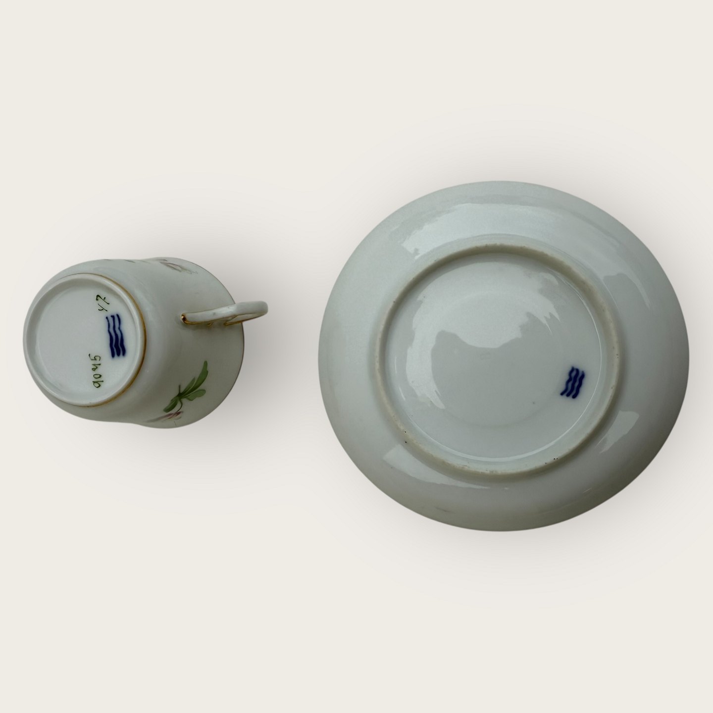 Royal Copenhagen, lille kaffekop i tyndt porcelæn dekoreret med Anemoner, #9075, Kop højde 5,5cm, diameter 6,3cm, underkop diameter 8,5, Pæn stand ( Den tredje kop har 2 små skår på underkoppen (se foto) og koster 125kr)