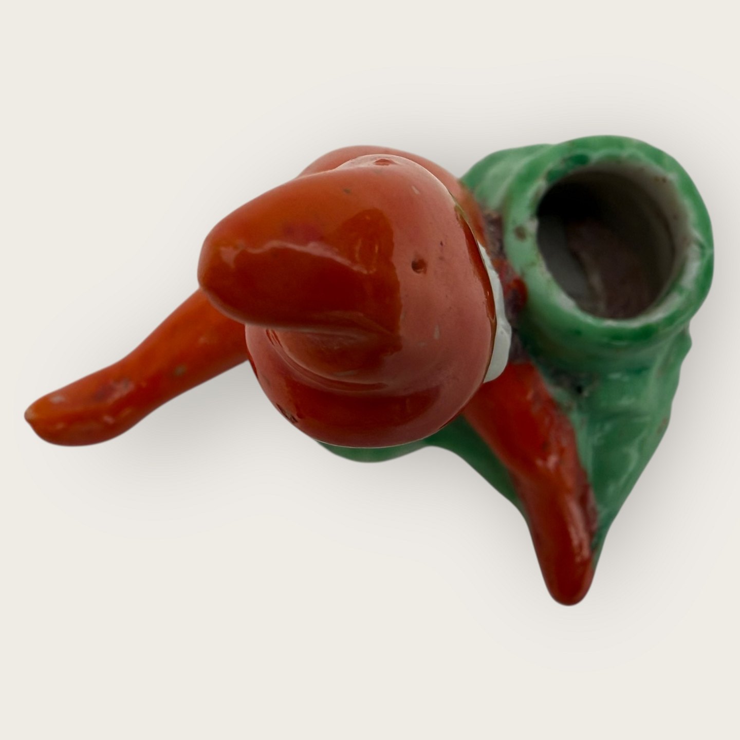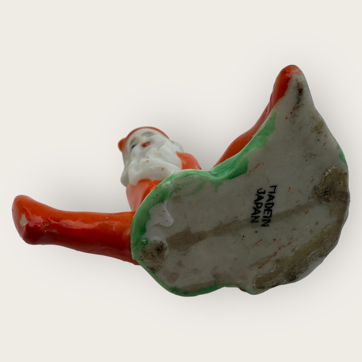 Lille japansk porcelænsnisse med lysestage, Mærket: Made in Japan, Ca. 6x6cm, Pæn patineret stand
