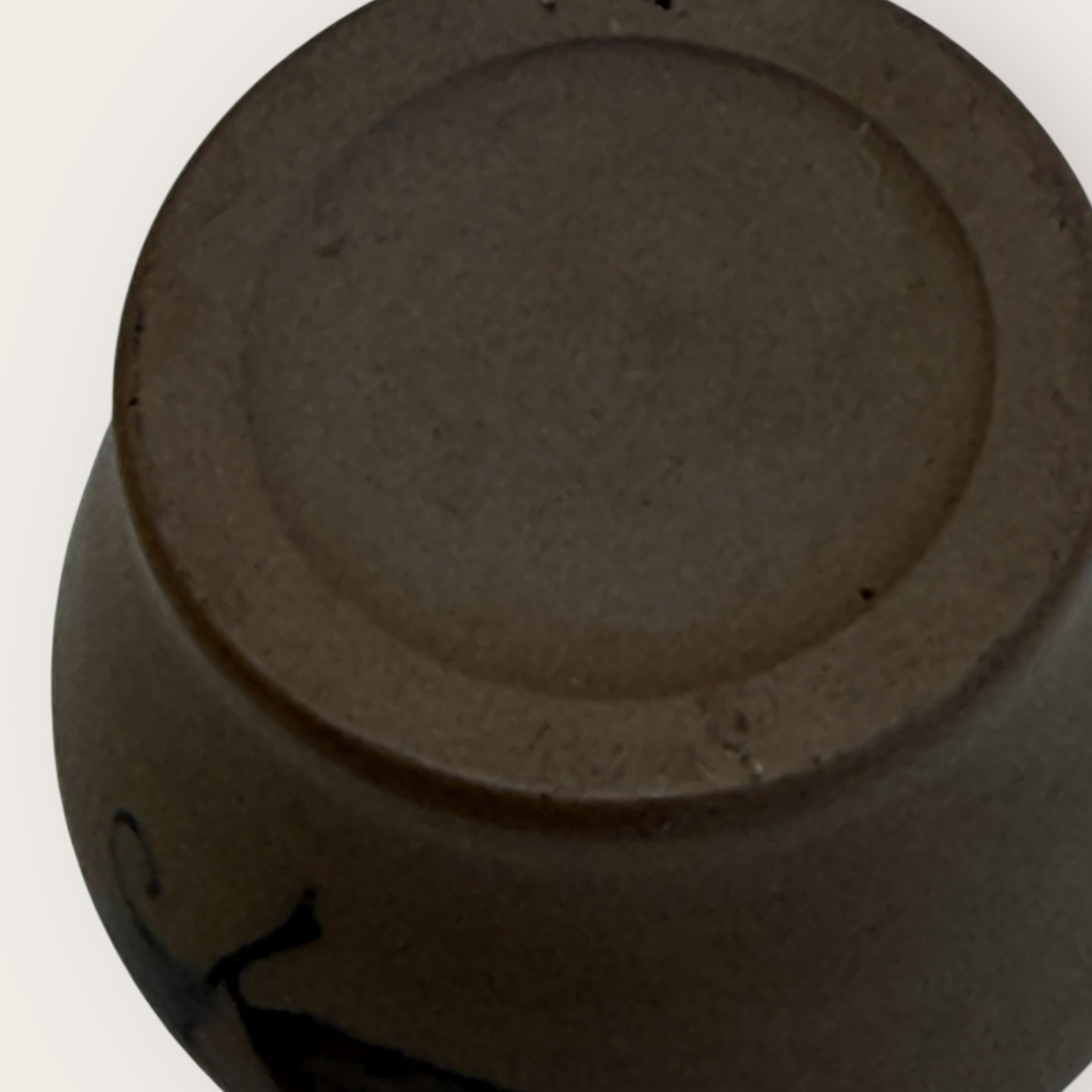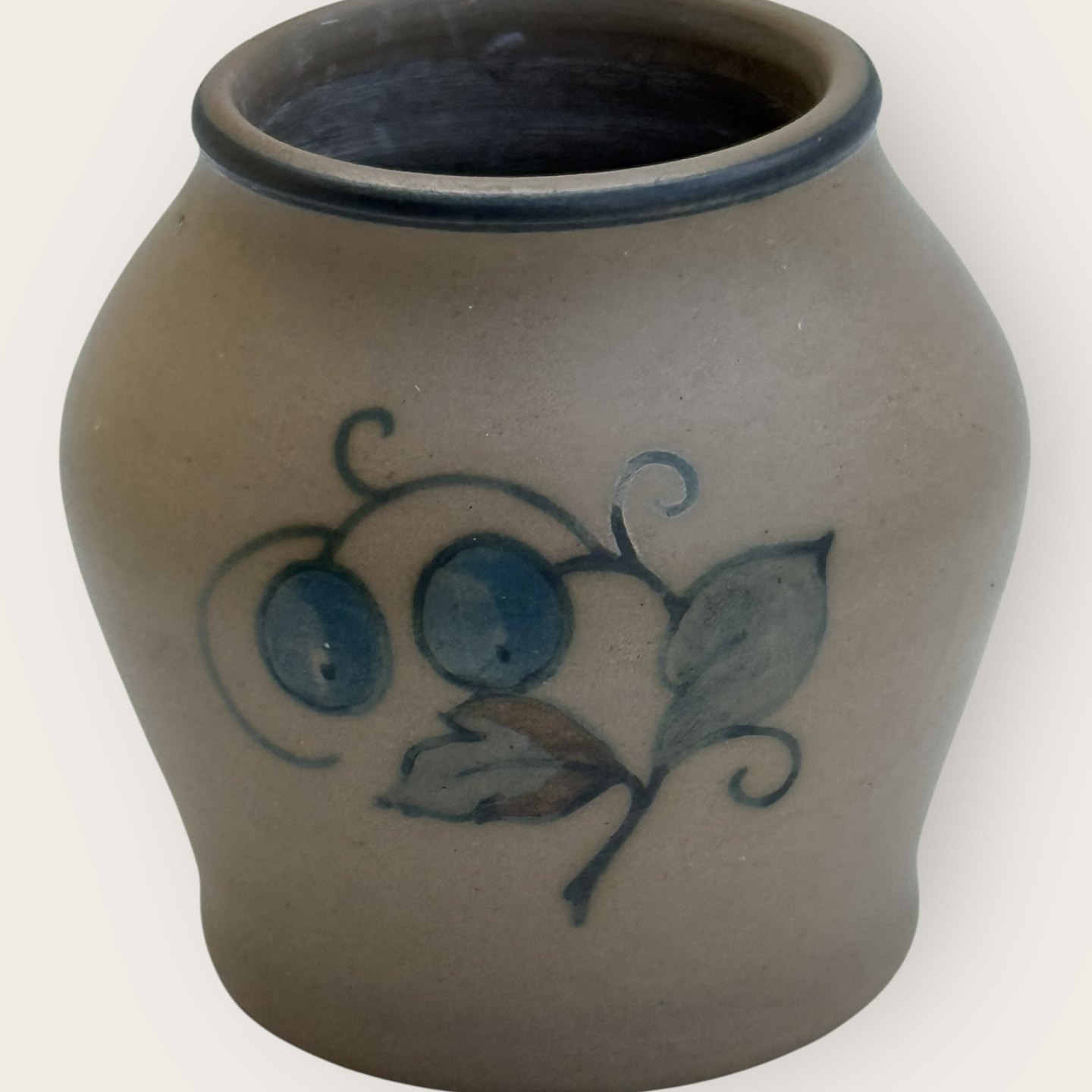 Bornholmsk keramik, Hjorth, Brun stentøj, Lille Vase, Med bær og blade som motiv, ca. 5x5cm *pæn stand*