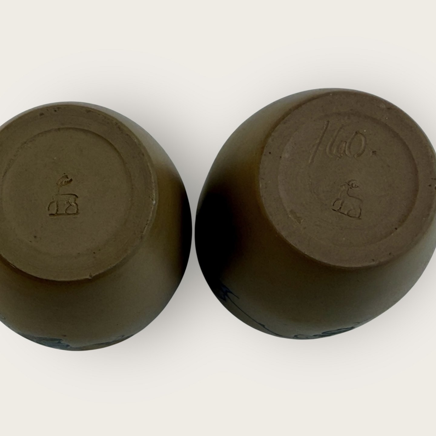 Bornholmsk keramik, Hjorth, Brun stentøj, Vase, Nr.160, Med frugt motiv, 8cm høj, *pæn stand*