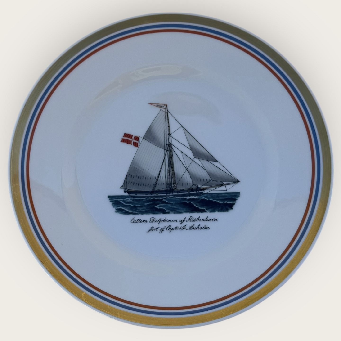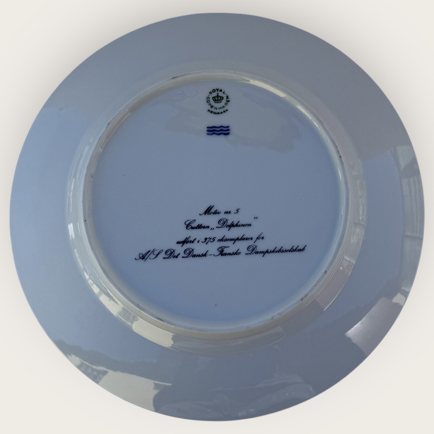 Royal Copenhagen, Motiv 5, Cutten Delphinen, Udført i 375 eksemplarer for A/S Det- Dansk-Franske Dampskibsselskab, 25cm i diameter, perfekt stand