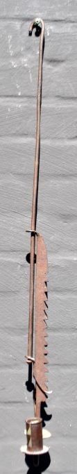 Bonde hænge lysestage, 17./18. årh. Danmark. Jern. Med lyseholder og klemmestage. Ligeledes med regylerbart ophæng. L.: 62 cm. Udtrukket længde: 98 cm.