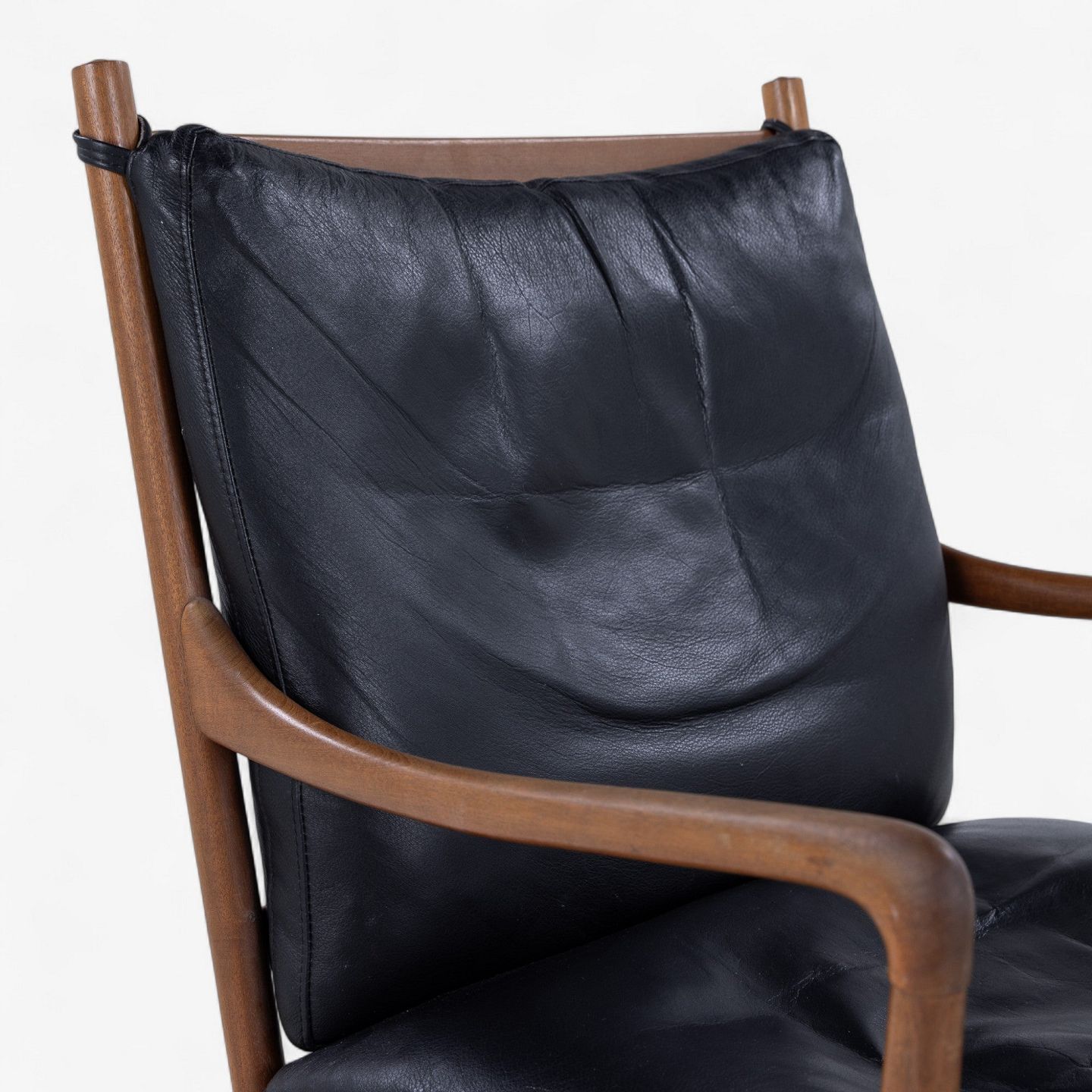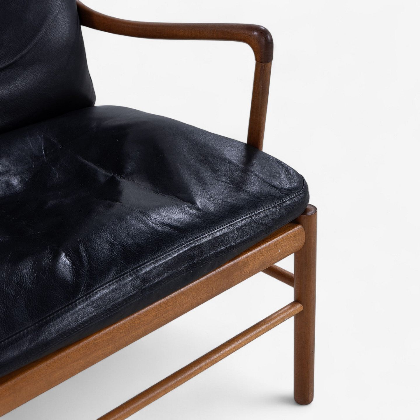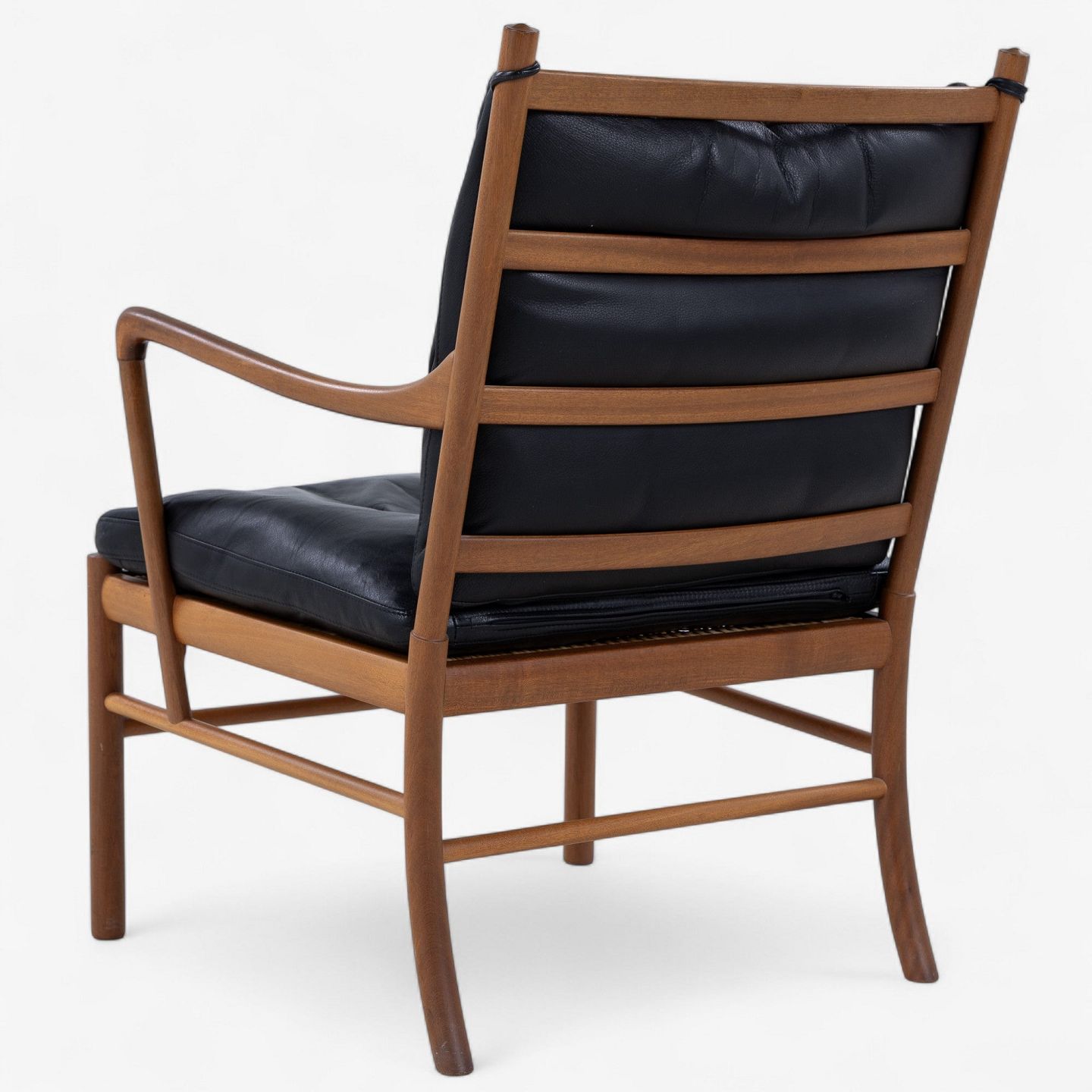 PJ 149 - 'Colonial Chair'-lænestol i mahogni med hynder i sort patineret læder.