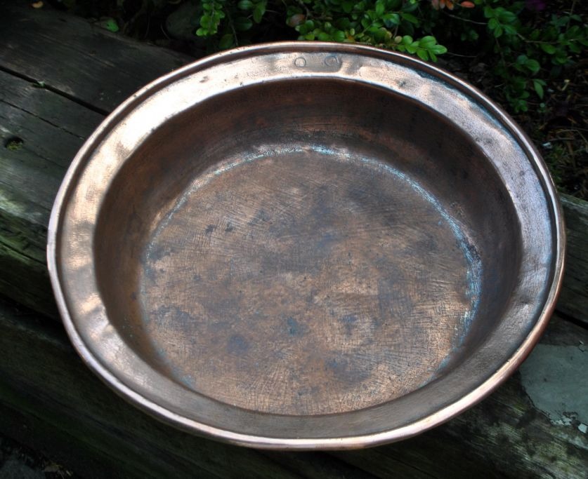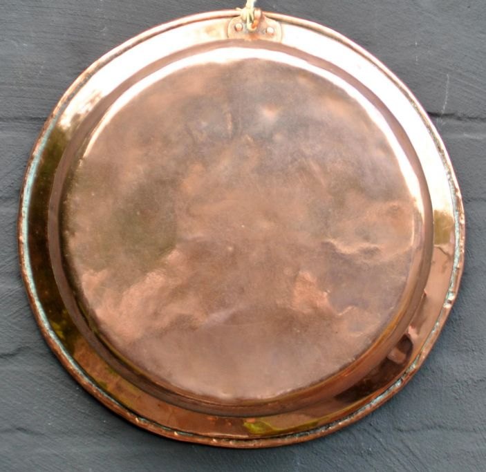 Stort dansk antikt mælkefad, 1757. Med mesterstempel og bystempel: JCR 1757. Med vægophæng. H.: 9 cm. Dia.: 38,5 cm. Vægt næsten 2 kg.