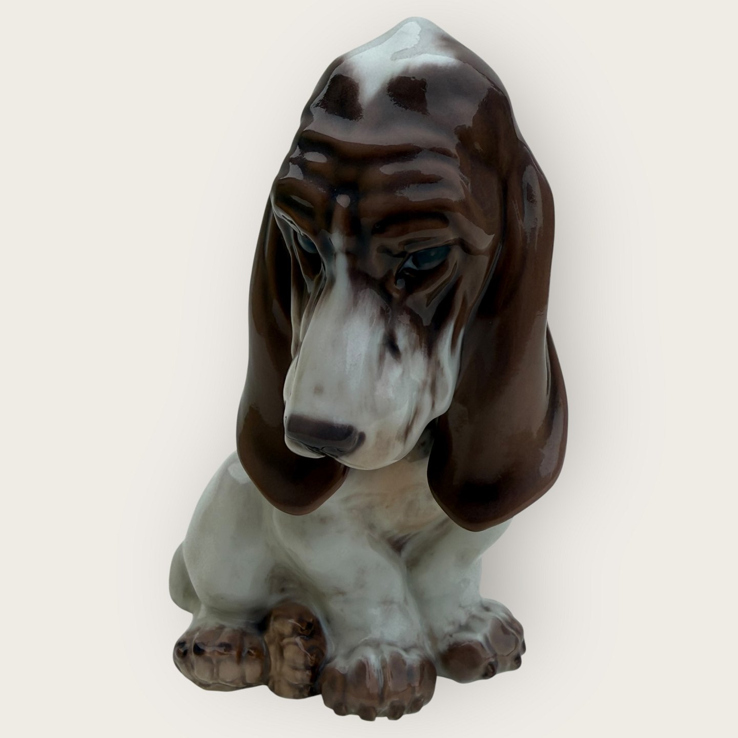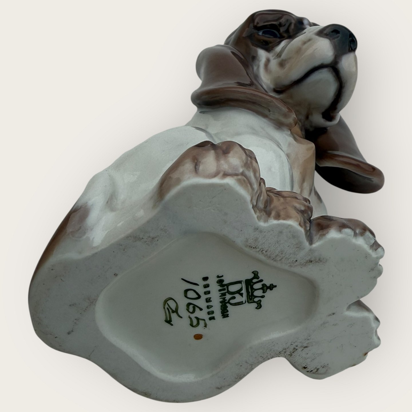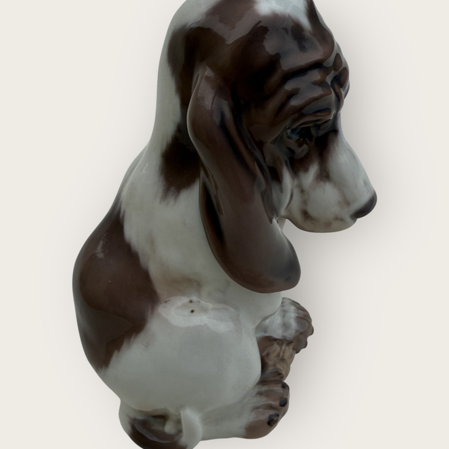 Dahl Jensen, Basset hund siddende #1065, 14cm høj, 2.sortering *Pæn stand*