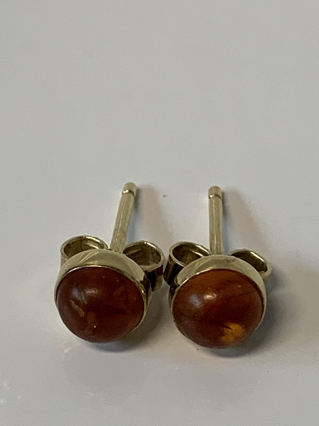 Guldøreringe i 14 karat guld, indlagt Rav.