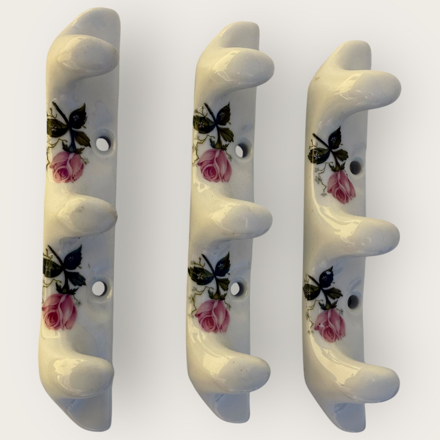 Porcelaine de Couleuvre, Made in France, Knager med roser, De tre er 16cm lange, fin stand